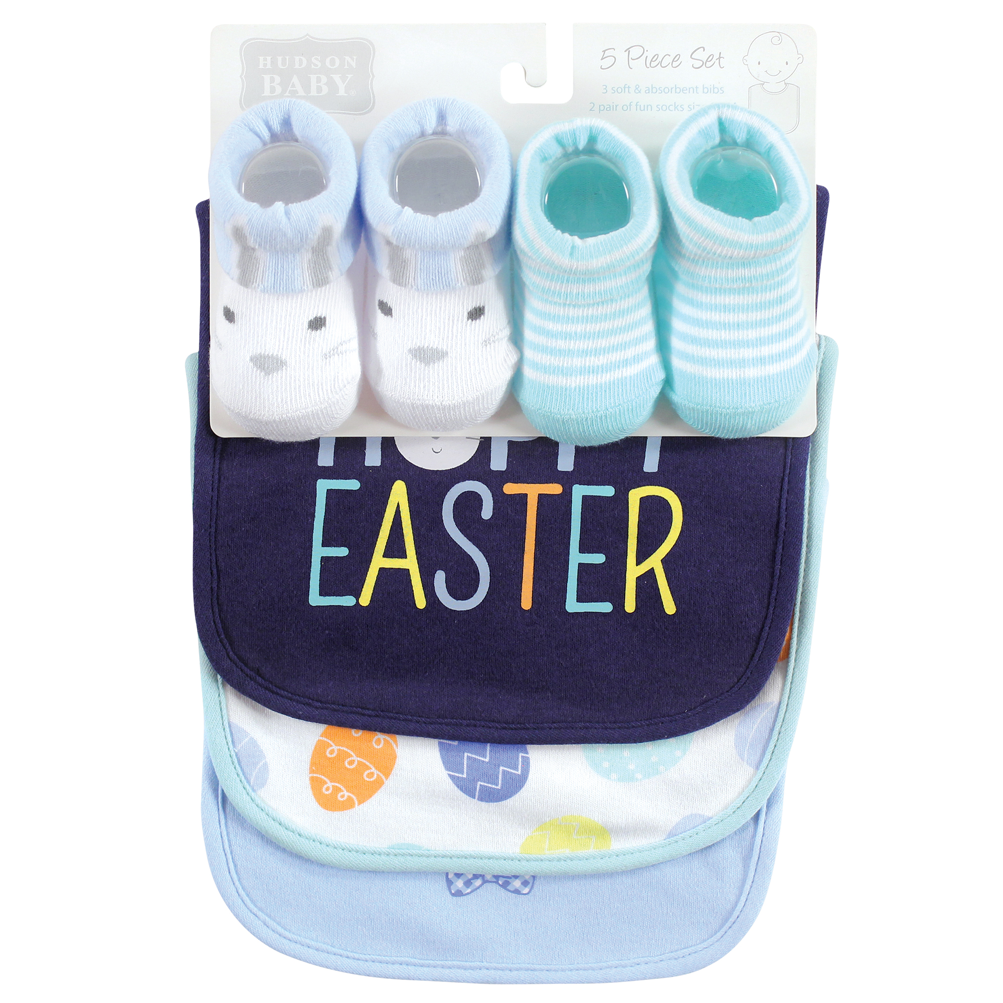 Hudson Baby Cotton Bib and Sock Set, Hoppy Easter