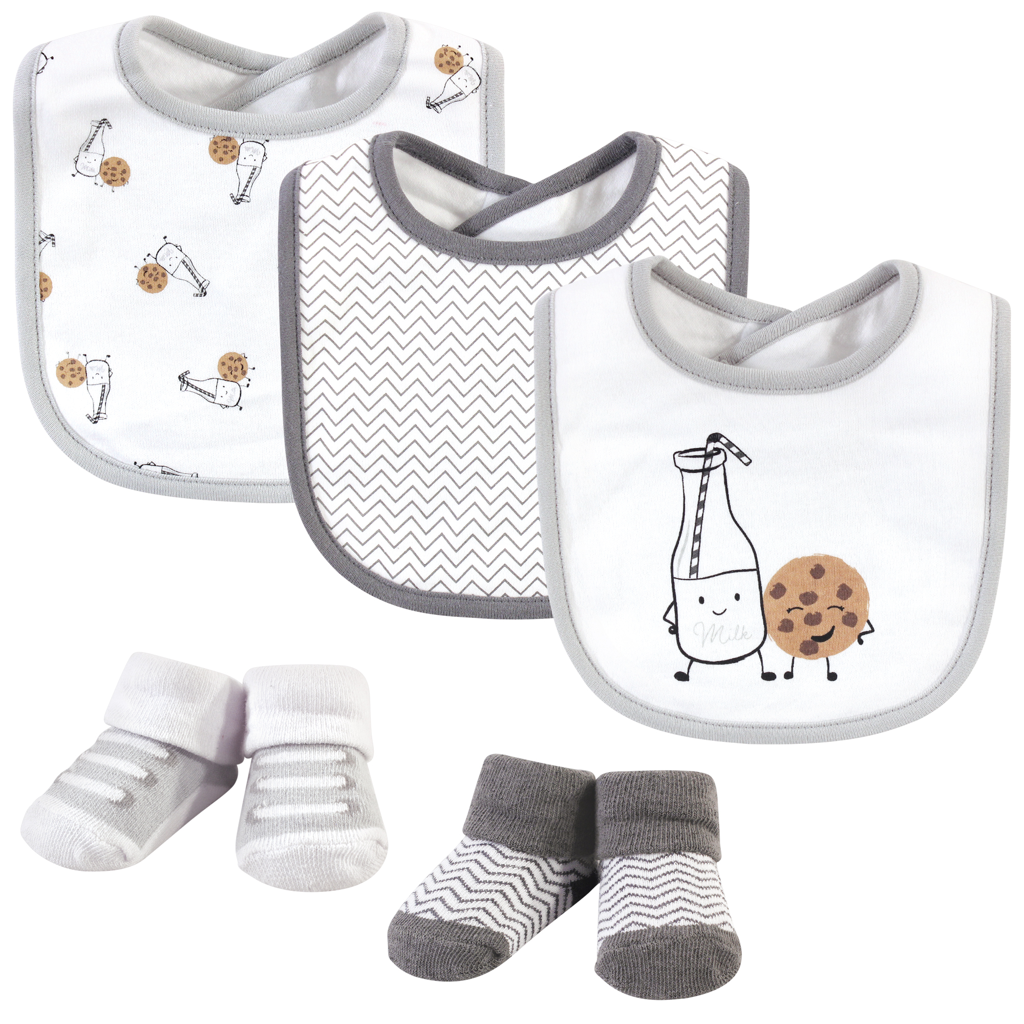 Hudson Baby Cotton Bib and Sock Set, Milk And Cookies