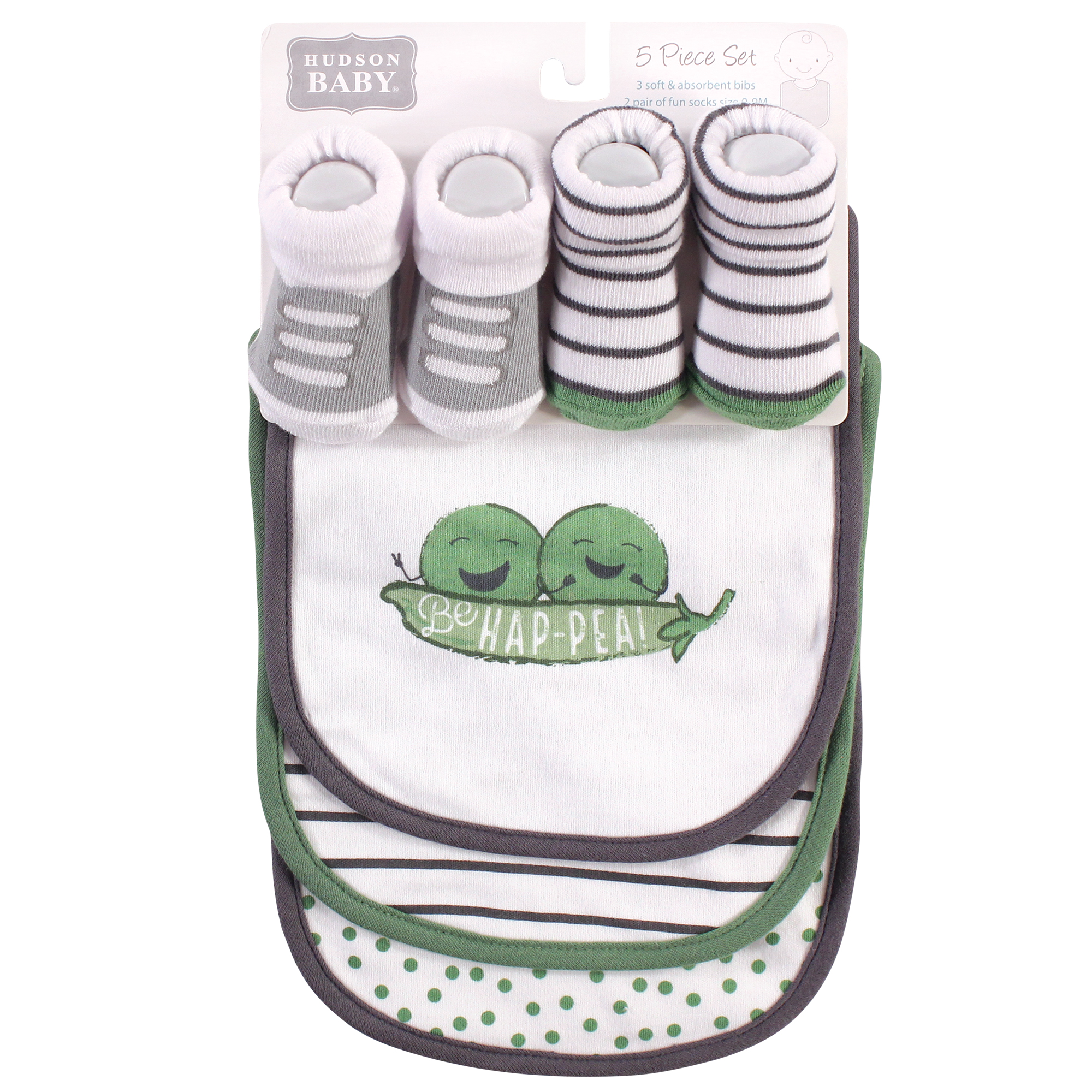 Hudson Baby Cotton Bib and Sock Set, Peas