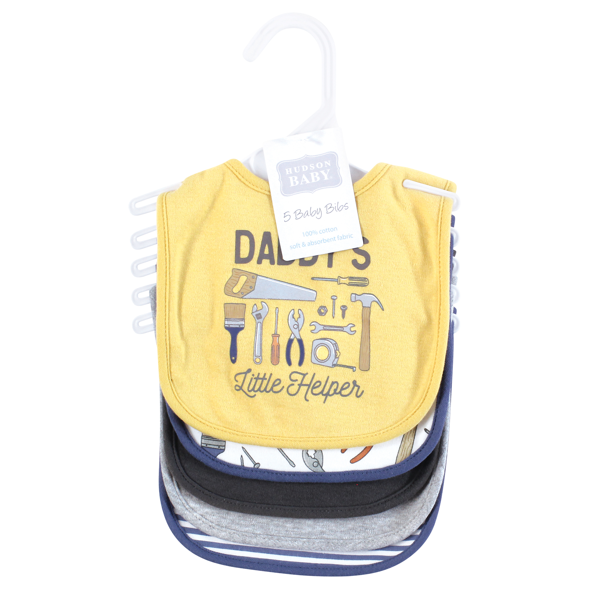 Hudson Baby interlock cotton drooler bibs are fashionable baby bibs made with two layers of soft, gentle cotton. Our bibs feature cute prints and embroideries and are great fashion bibs over baby's clothes to keep their outfits clean. Our bibs are great for drooling, feeding and more.