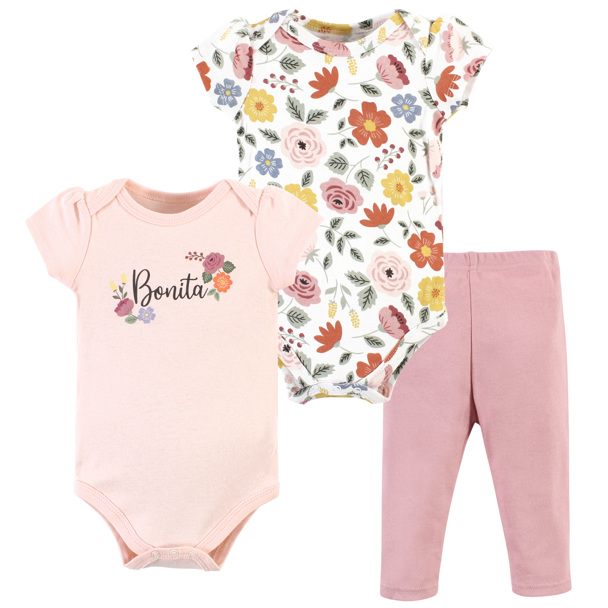 Hudson Baby Cotton Bodysuit and Pant Set, Bonita Short Sleeve