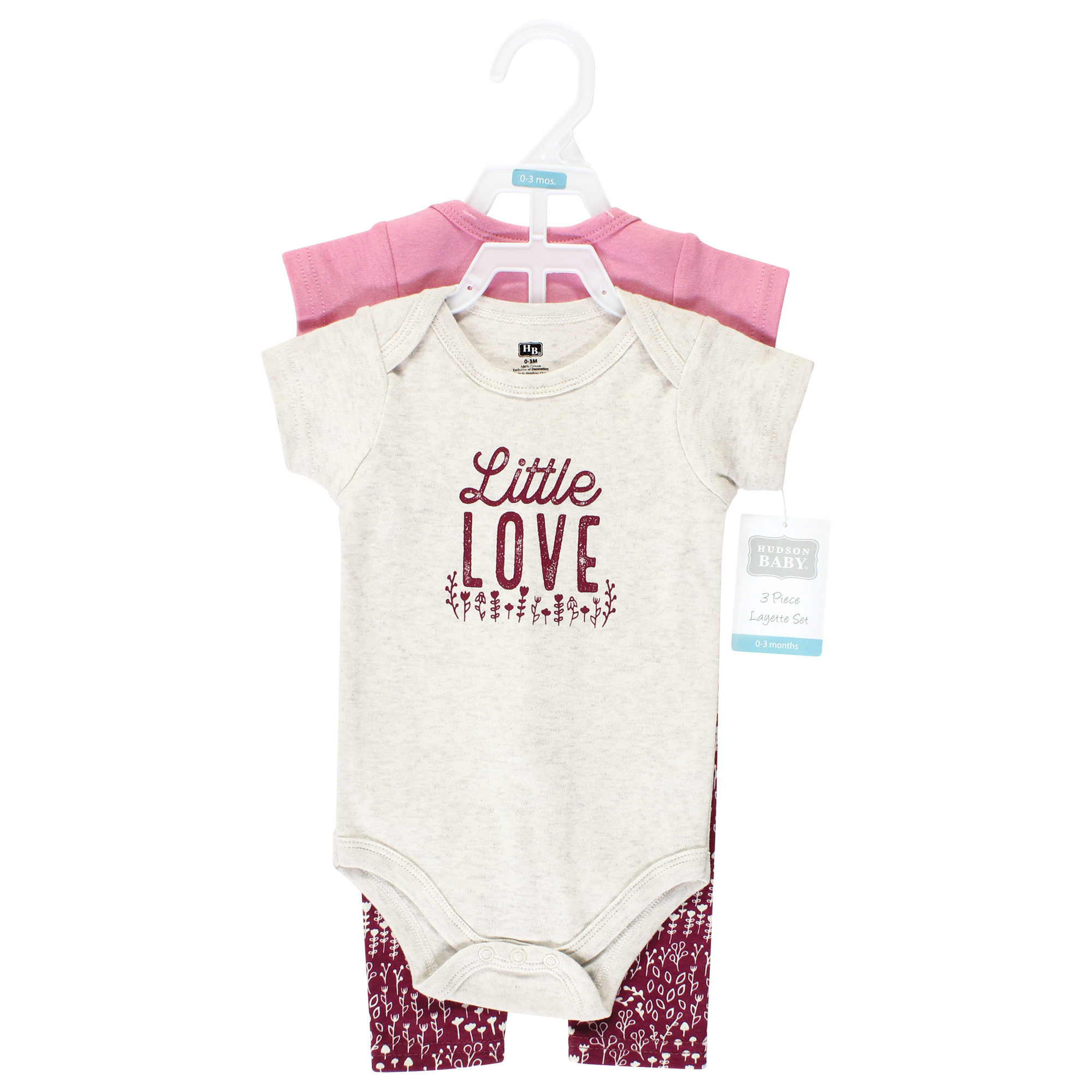 Hudson Baby Cotton Bodysuit and Pant Set, Little Love Flowers Short Sleeve