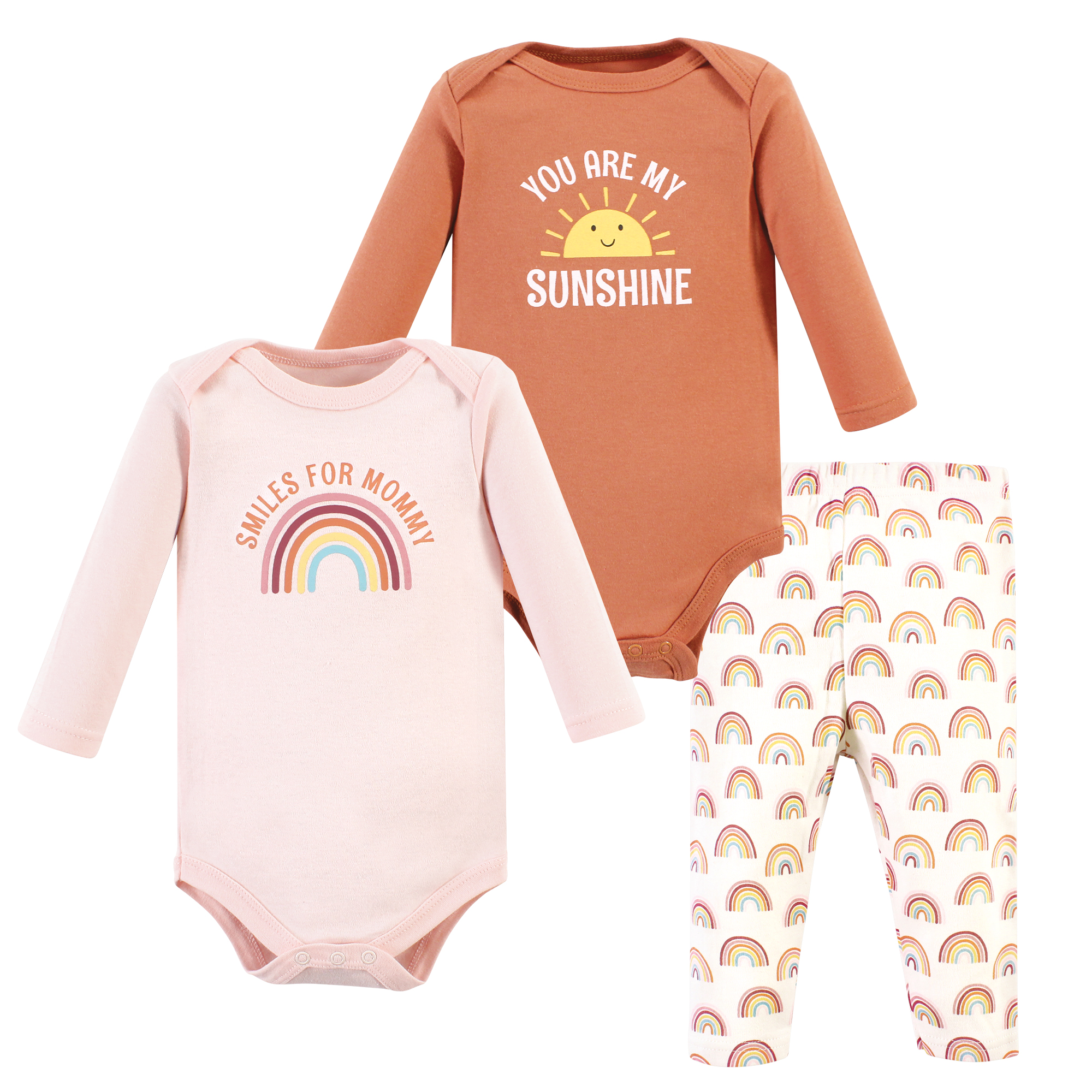 Hudson Baby Cotton Bodysuit and Pant Set, Sunshine Rainbows Long-Sleeve