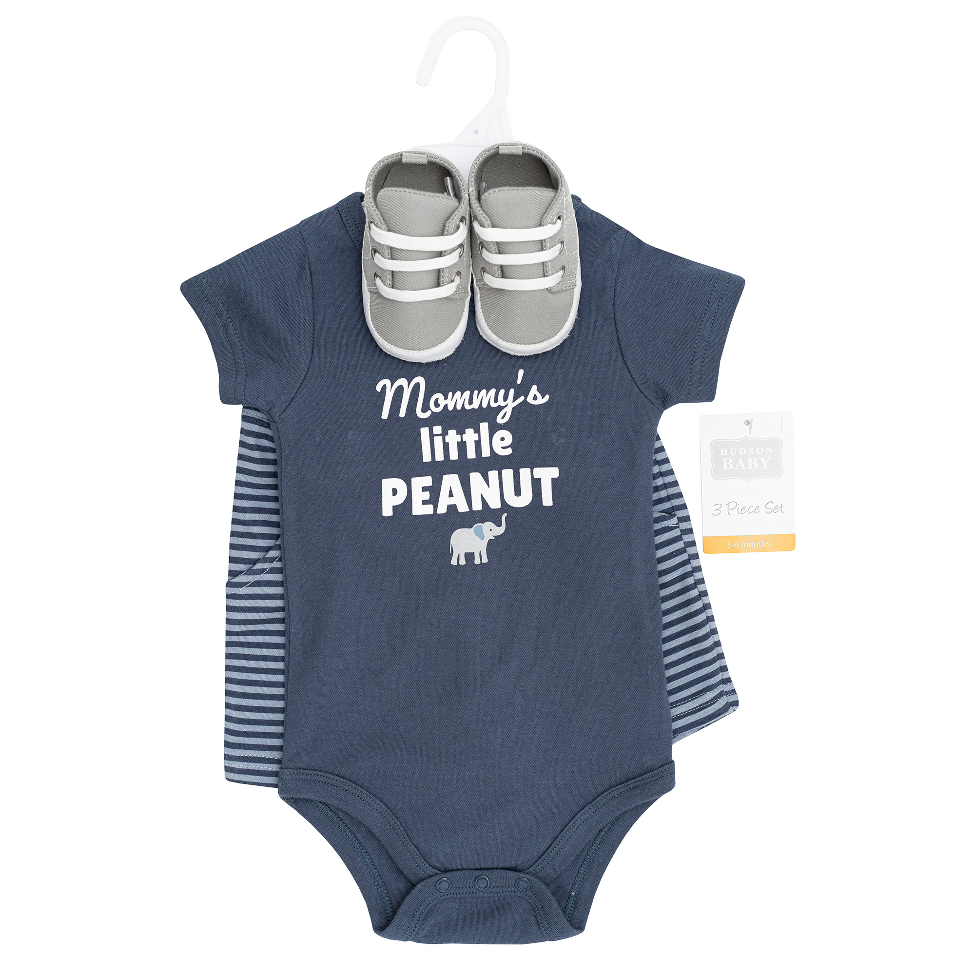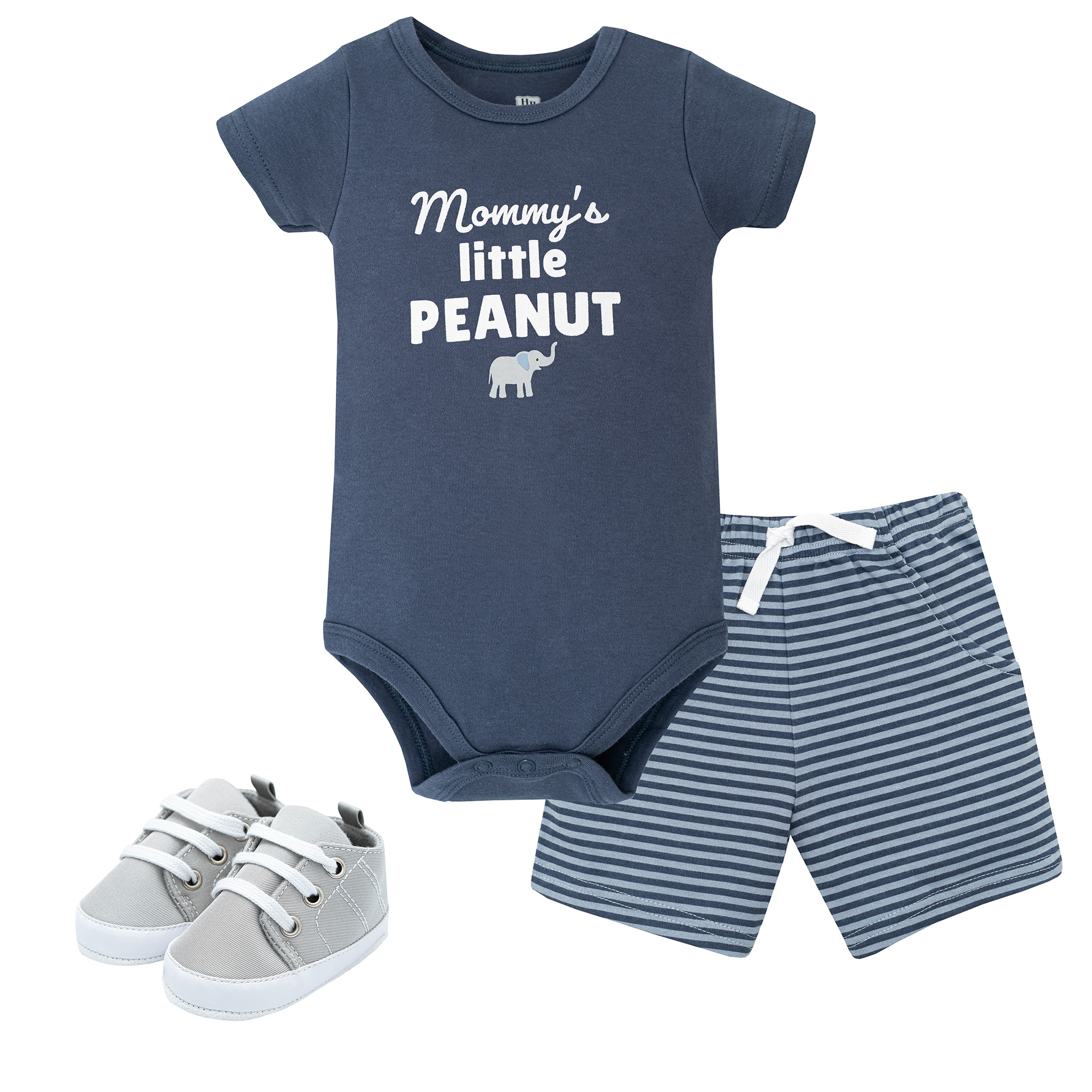 Product Description Hudson Baby bodysuit, shorts, and shoe is a perfect outfit to dress your baby for spring and summer days out. The outfit includes bodysuit and shorts made of 100% interlock cotton with a matching pair of shoes.