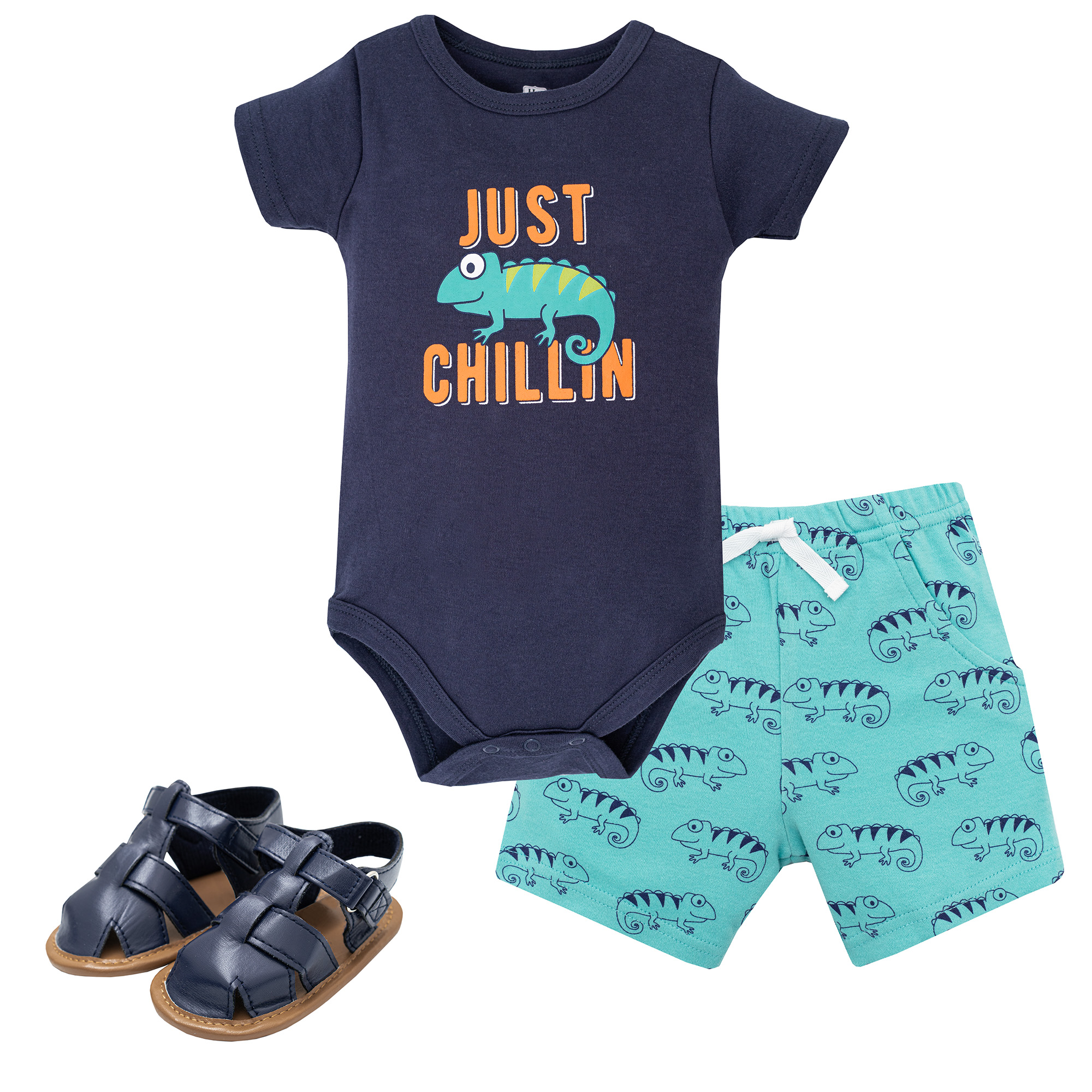 Hudson Baby Cotton Bodysuit, Shorts and Shoe Set, Chameleon