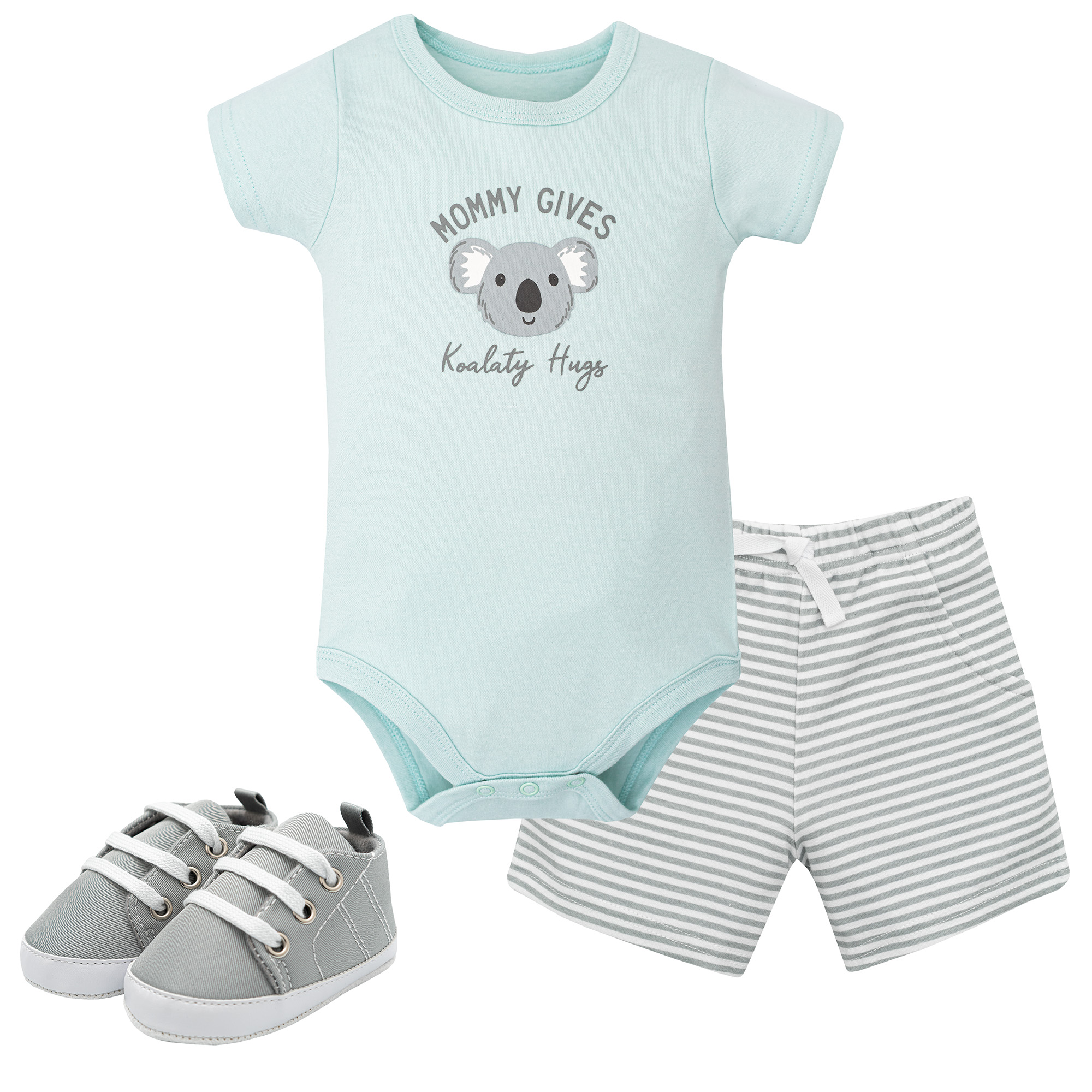 Hudson Baby Cotton Bodysuit, Shorts and Shoe Set, Koala Hugs