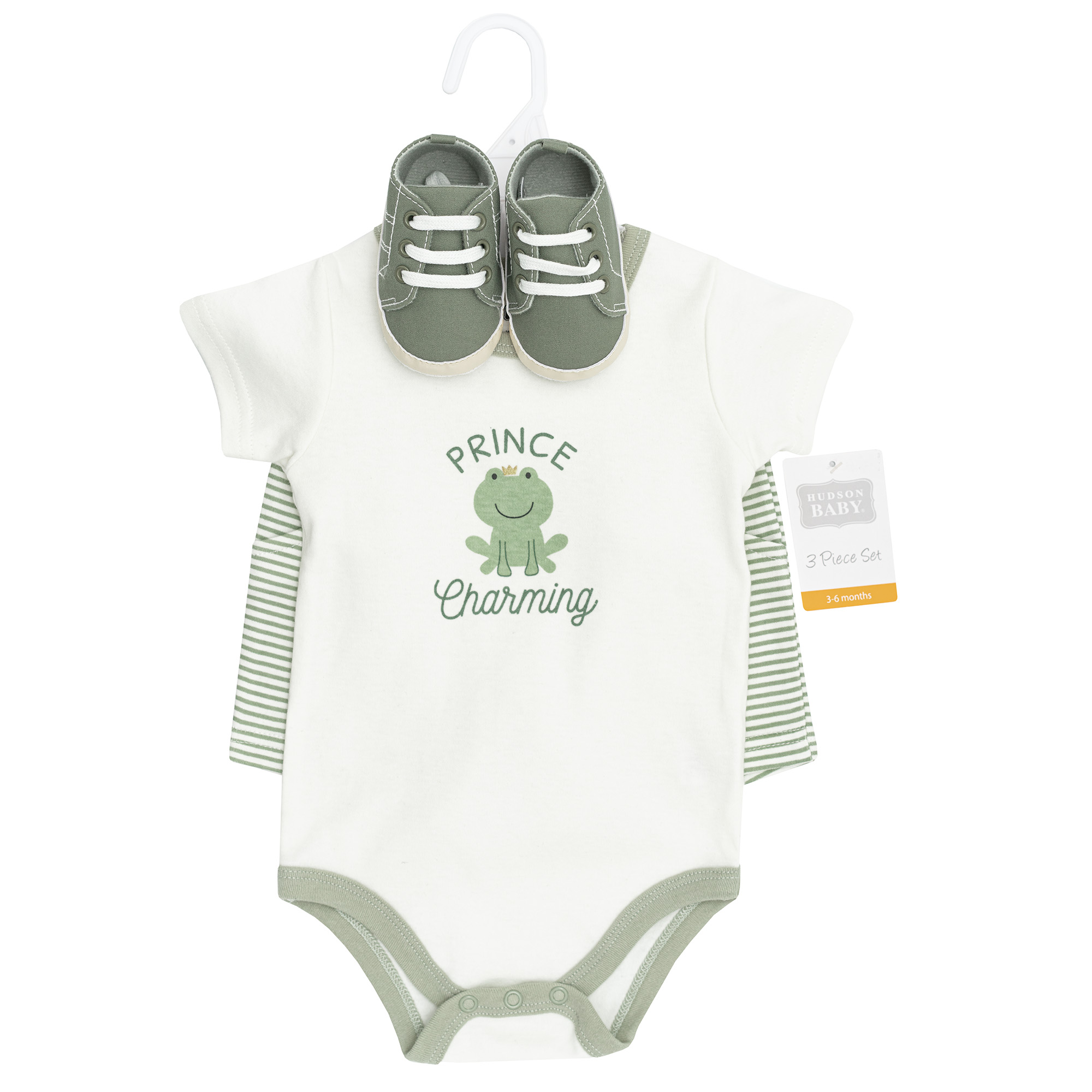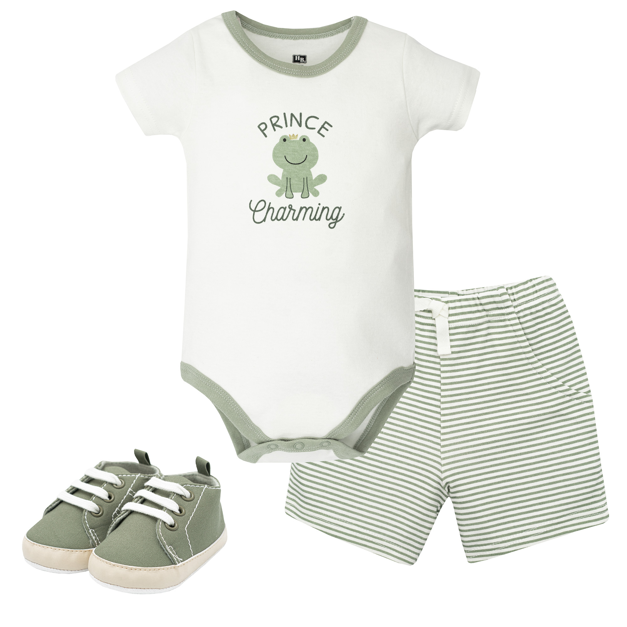 Hudson Baby Cotton Bodysuit, Shorts and Shoe Set, Prince Frog