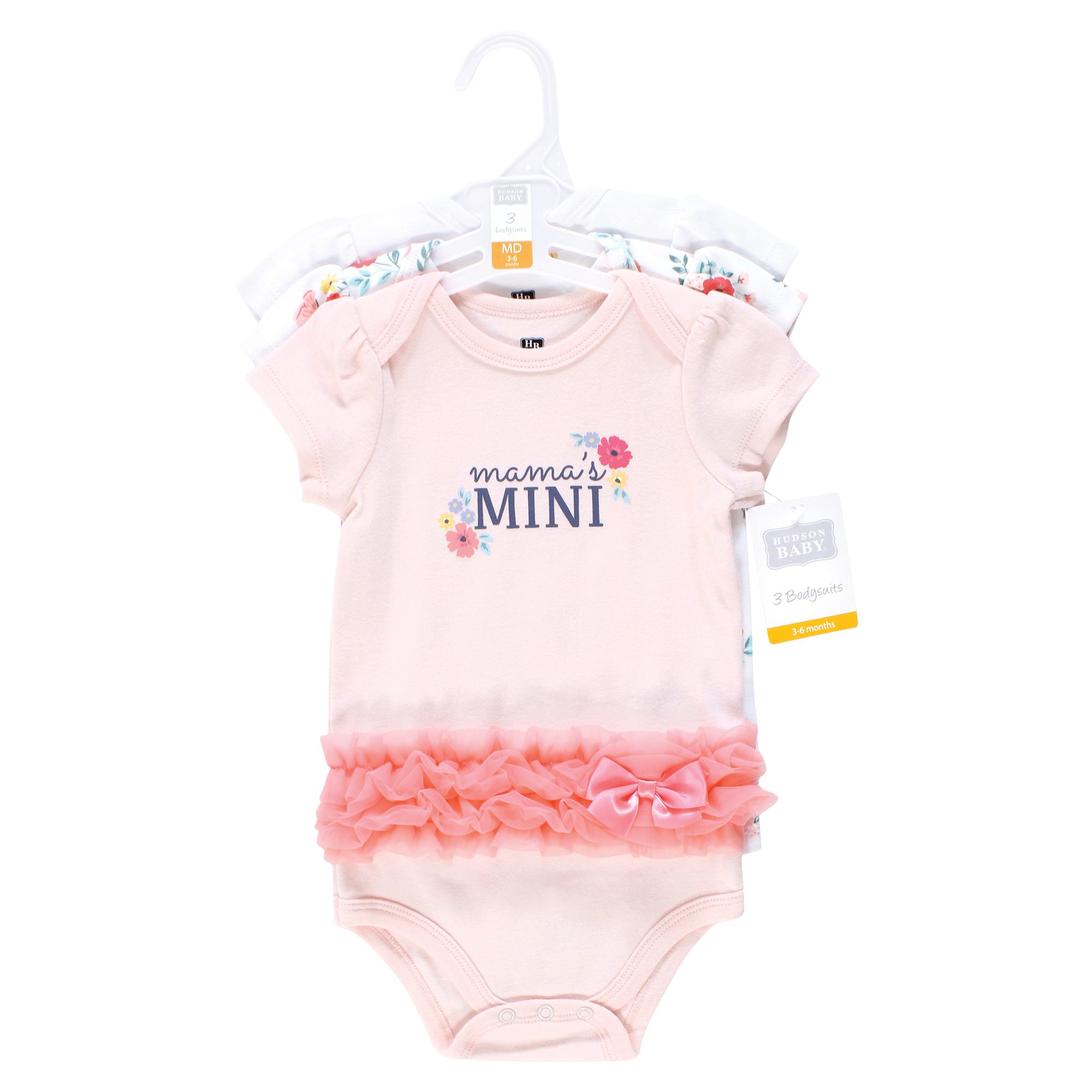 Hudson Baby Cotton Bodysuits 3-Pack, Butterfly Floral Tutu