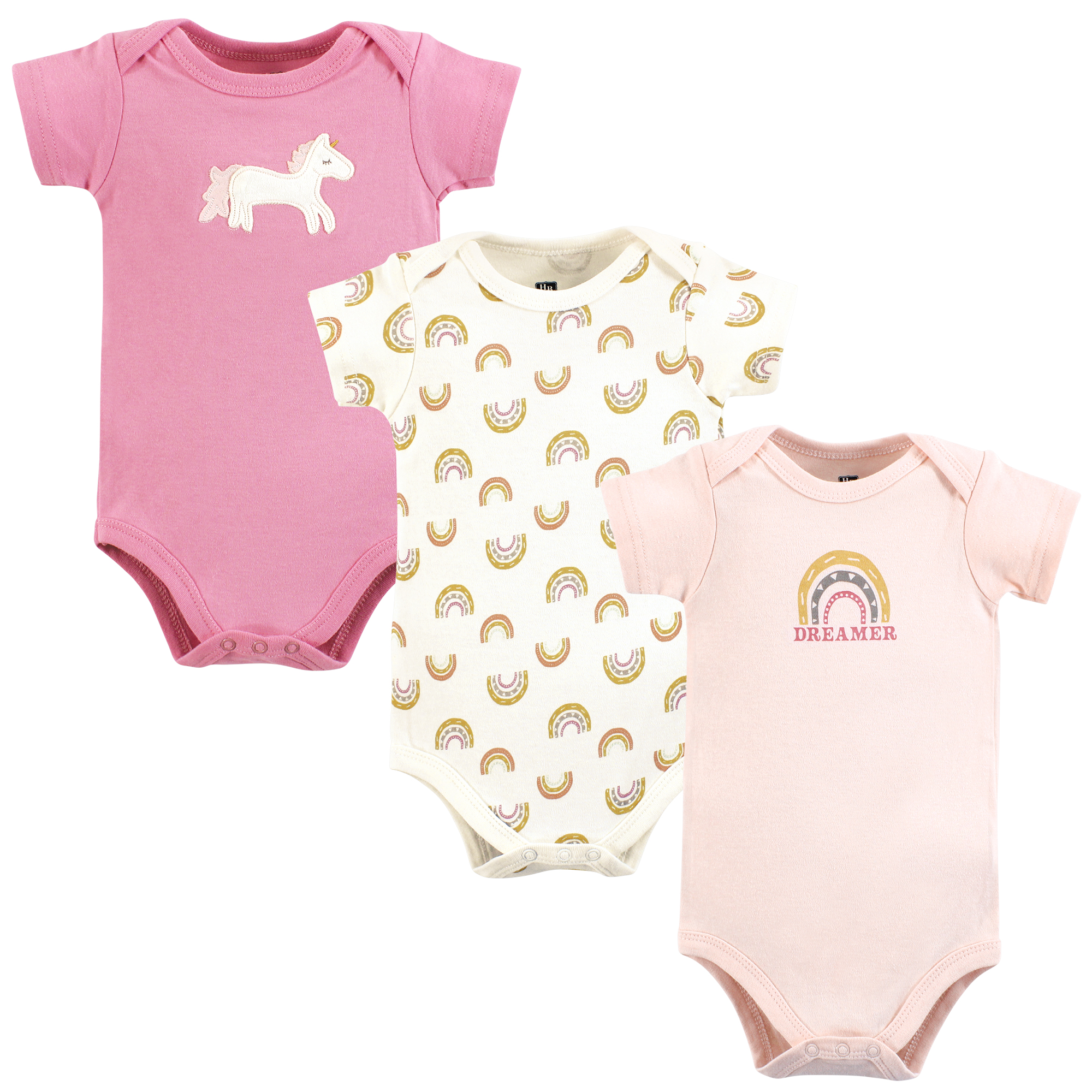 Hudson Baby Cotton Bodysuits 3-Pack, Dreamer Rainbow