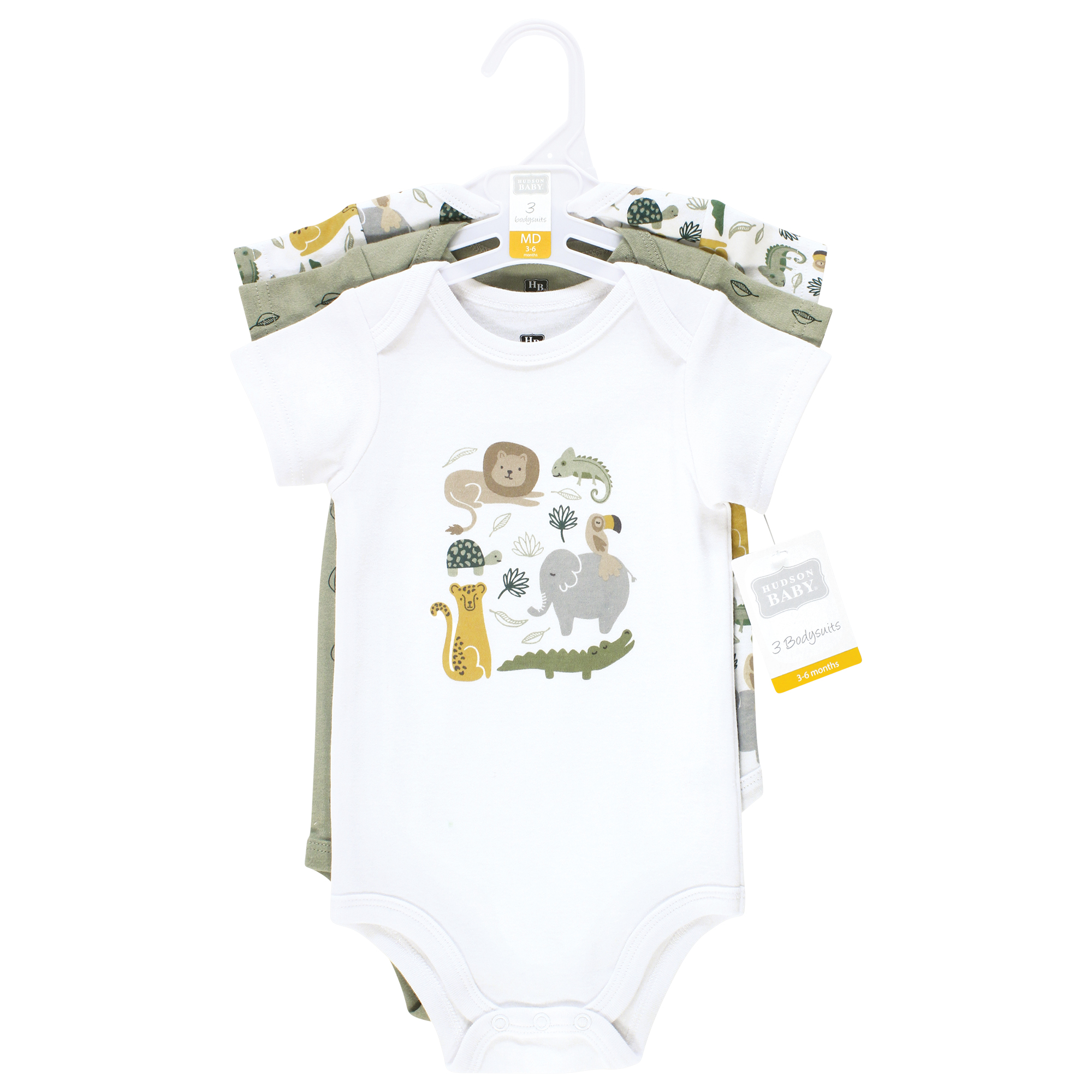 Hudson Baby Cotton Bodysuits 3-Pack, Jungle