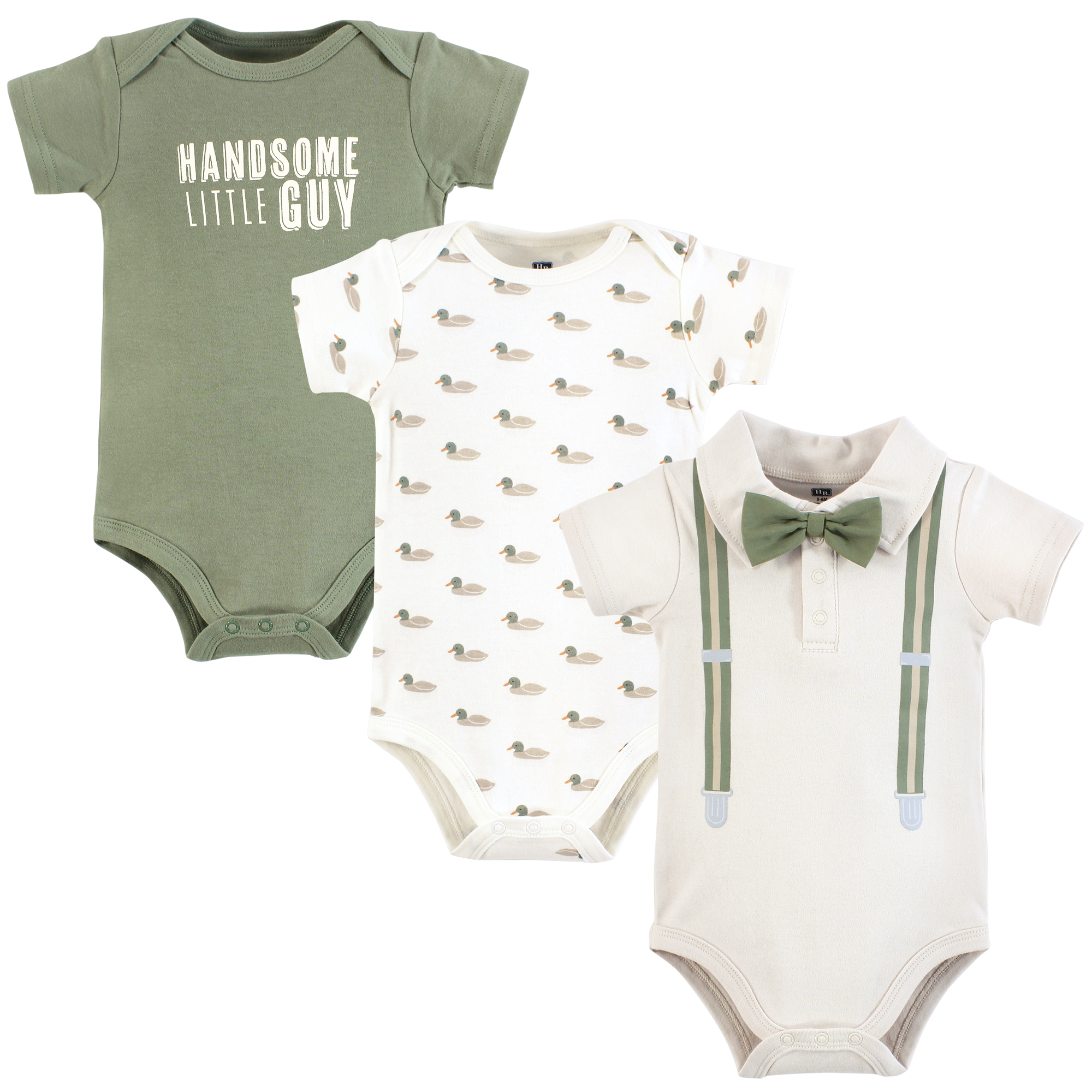 Hudson Baby Cotton Bodysuits 3-Pack, Mallard Polo