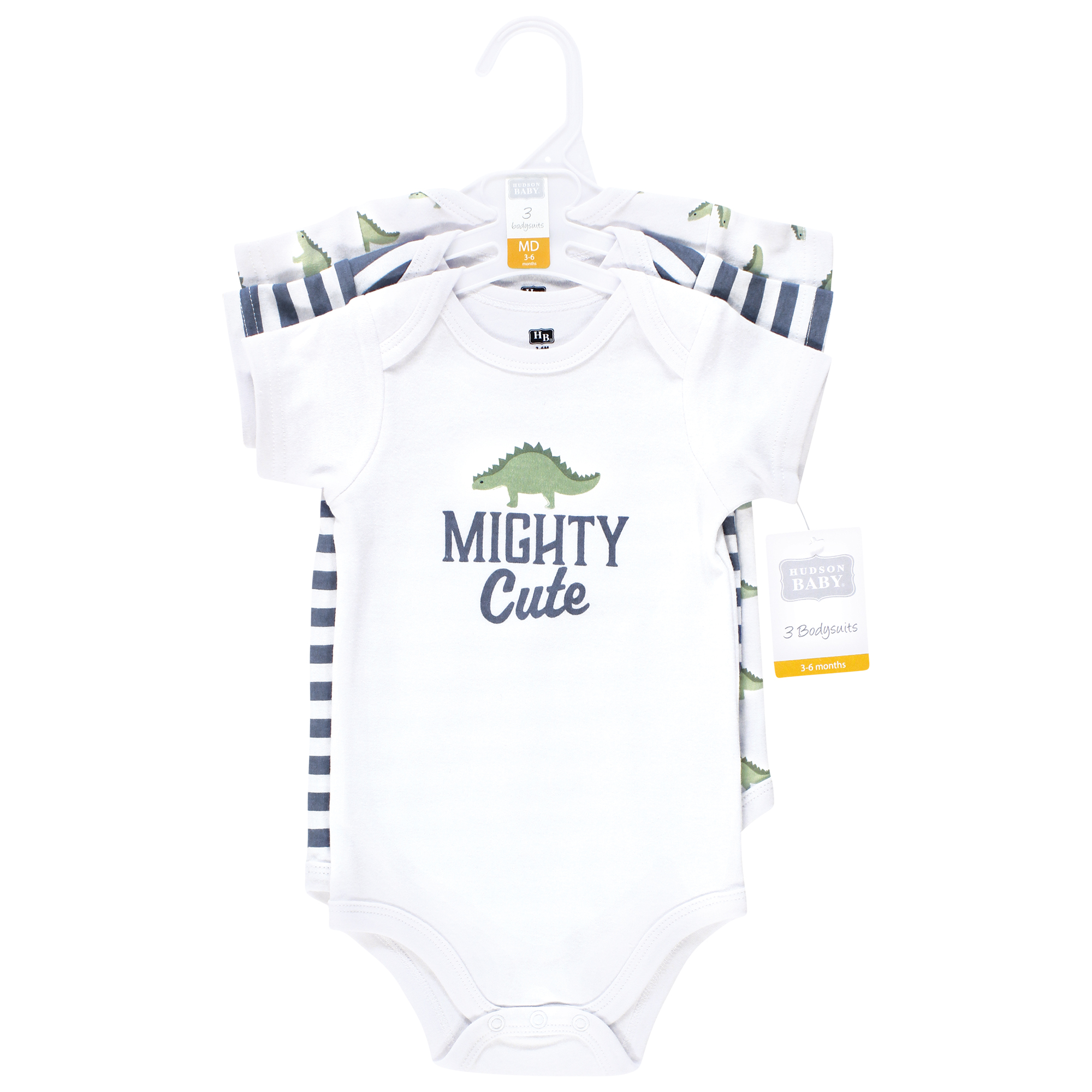 Hudson Baby Cotton Bodysuits 3-Pack, Mighty Cute Dino