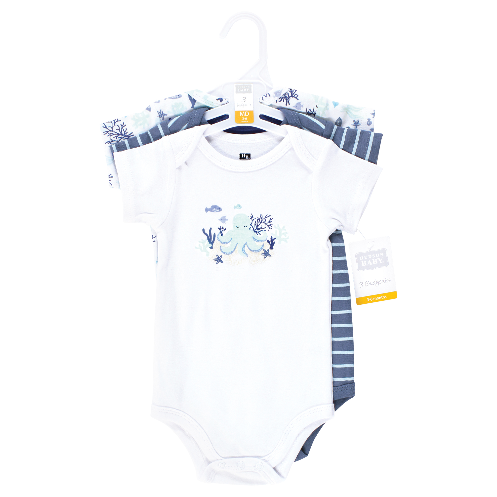 Hudson Baby Cotton Bodysuits 3-Pack, Mint Octopus