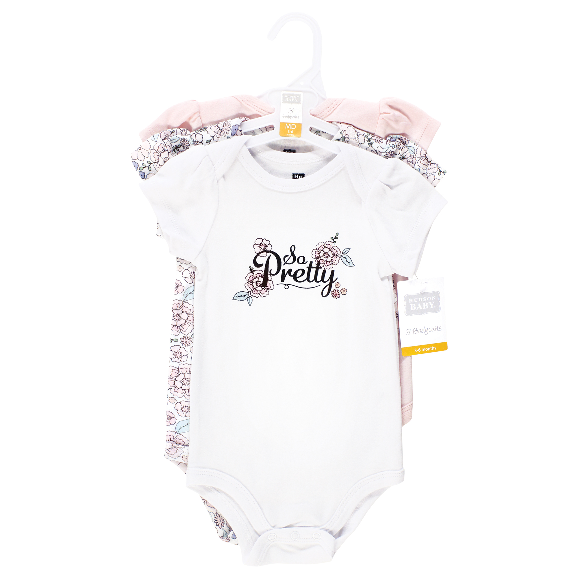 Hudson Baby Cotton Bodysuits 3-Pack, So Pretty Flower