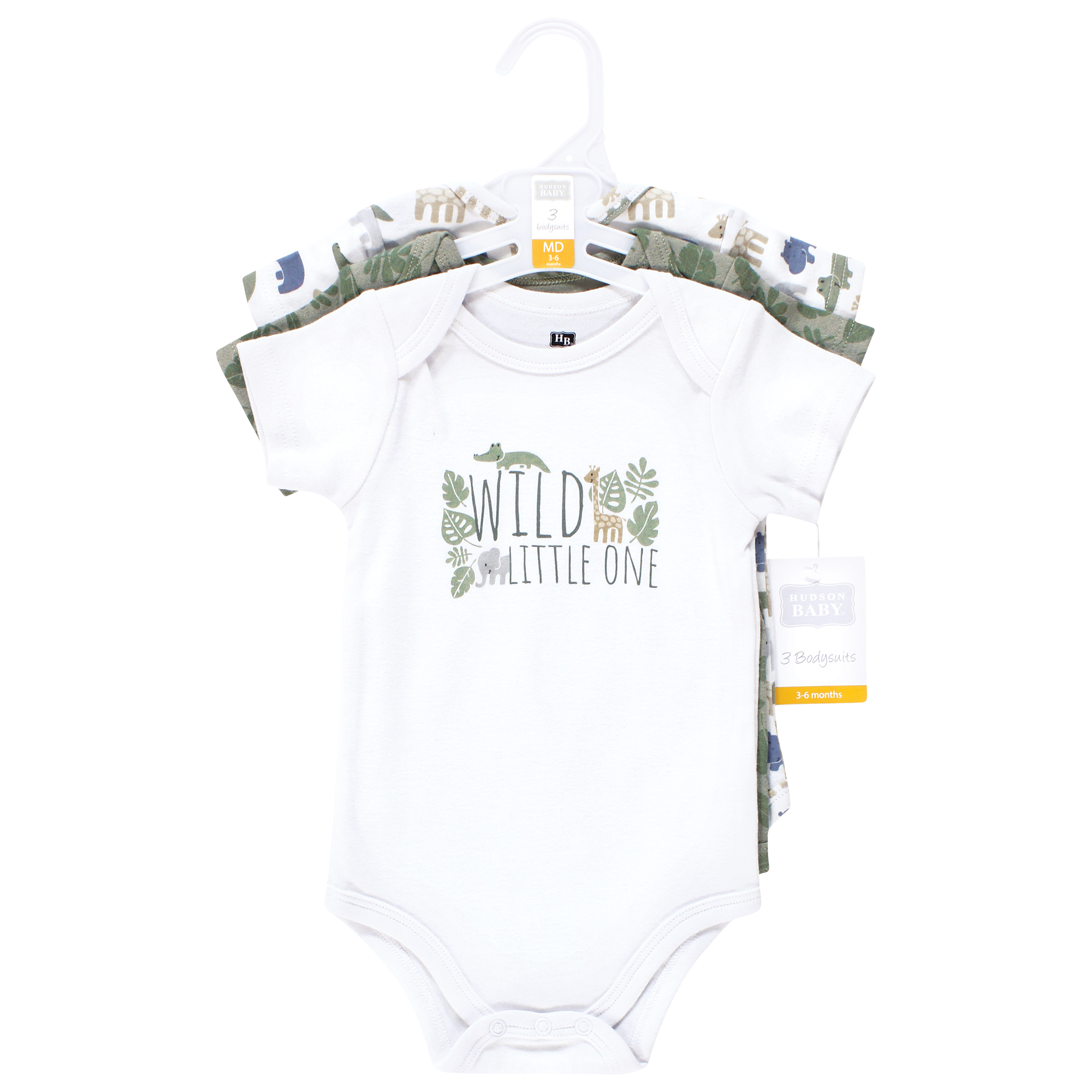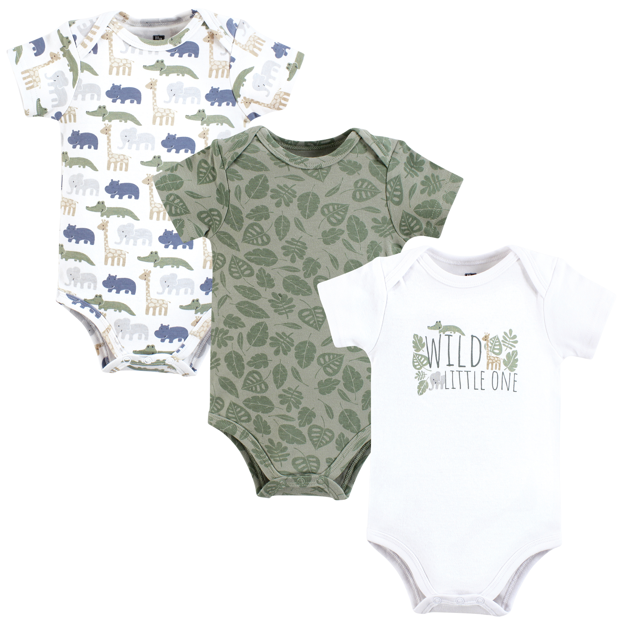 Hudson Baby Cotton Bodysuits 3-Pack, Wild Leaf Safari