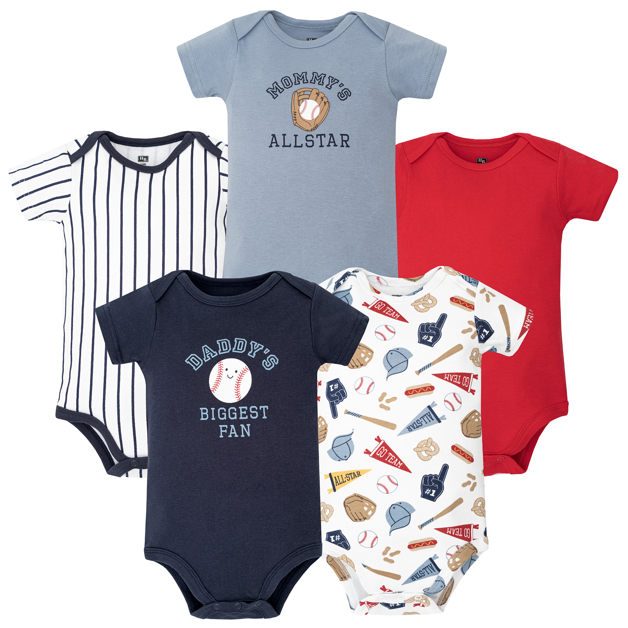 Hudson Baby Cotton Bodysuits 5-Pack, Baseball Biggest Fan