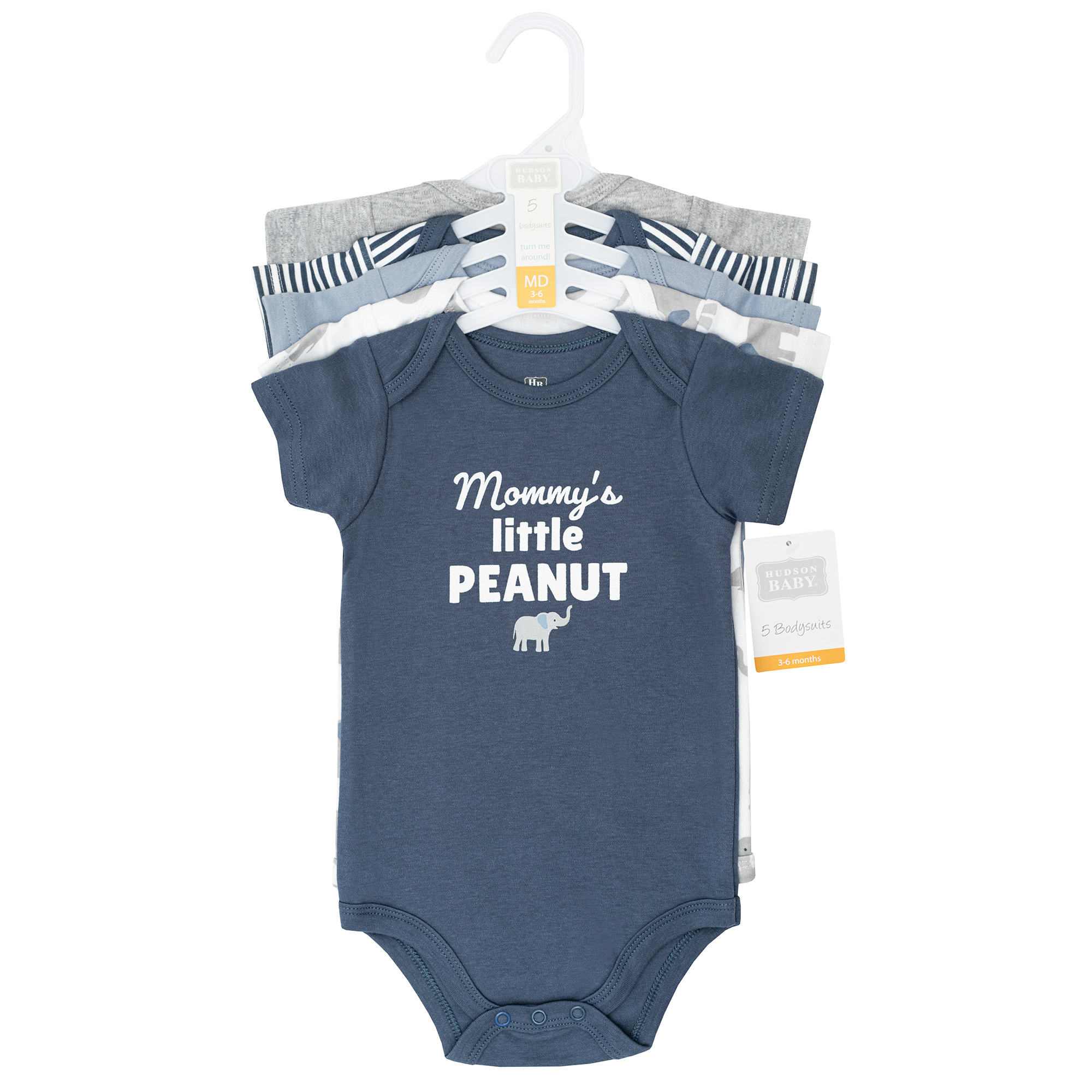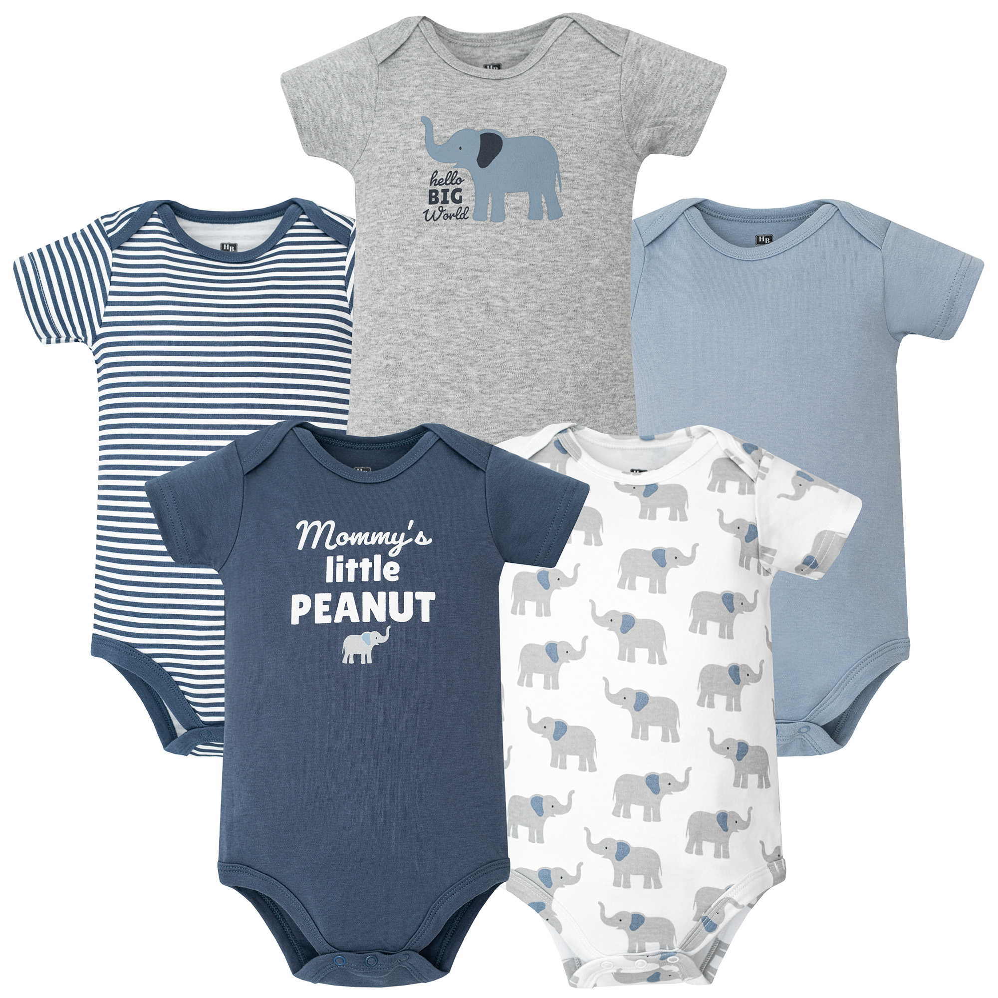 Hudson Baby Cotton Bodysuits 5-Pack, Blue Elephant Peanut