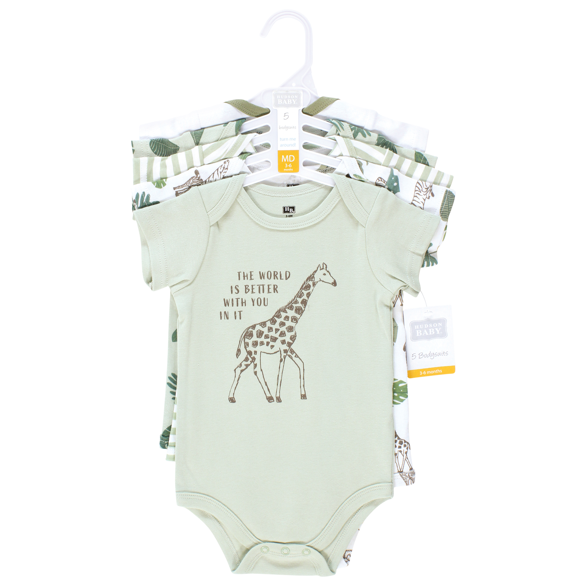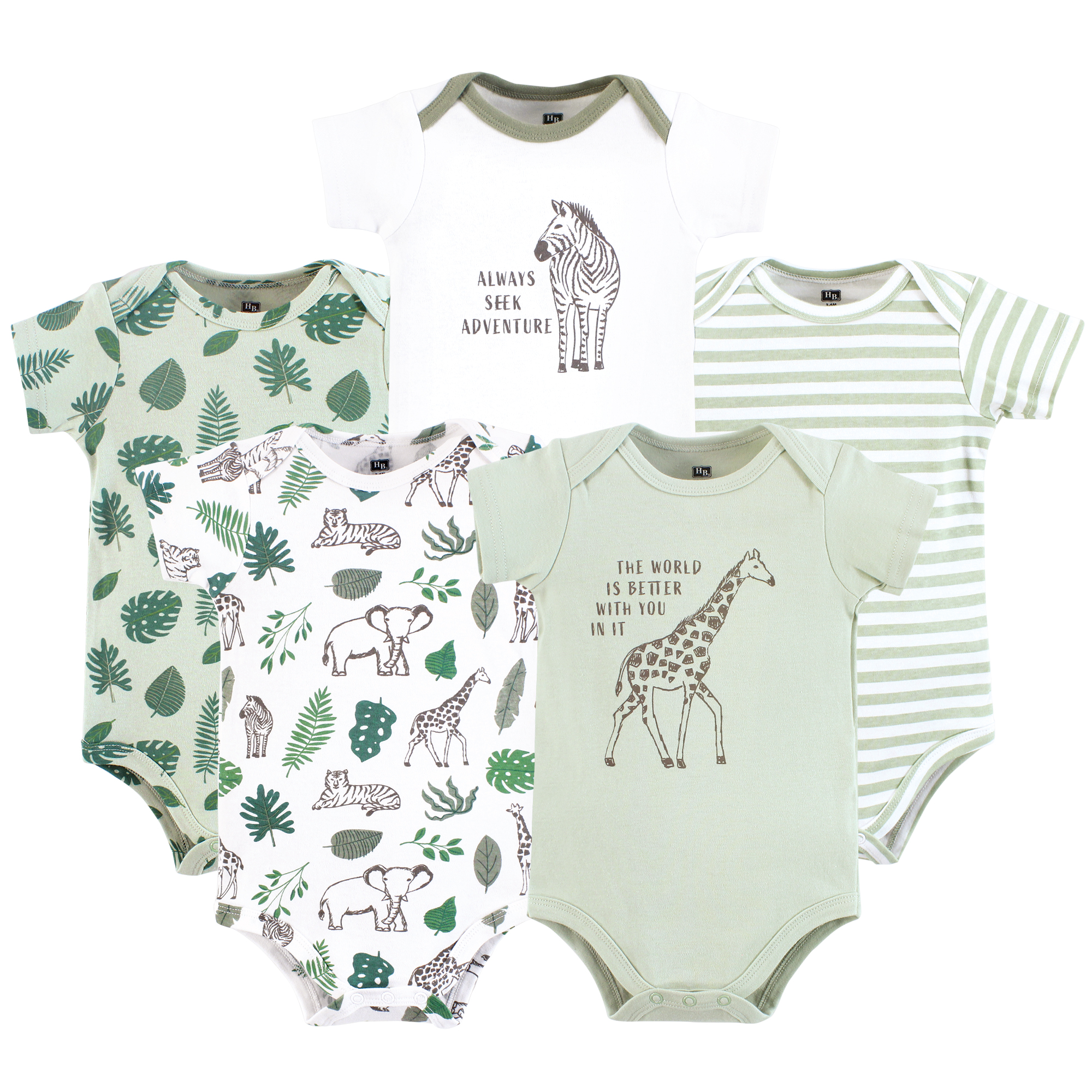 Hudson Baby Cotton Bodysuits 5-Pack, Green Jungle