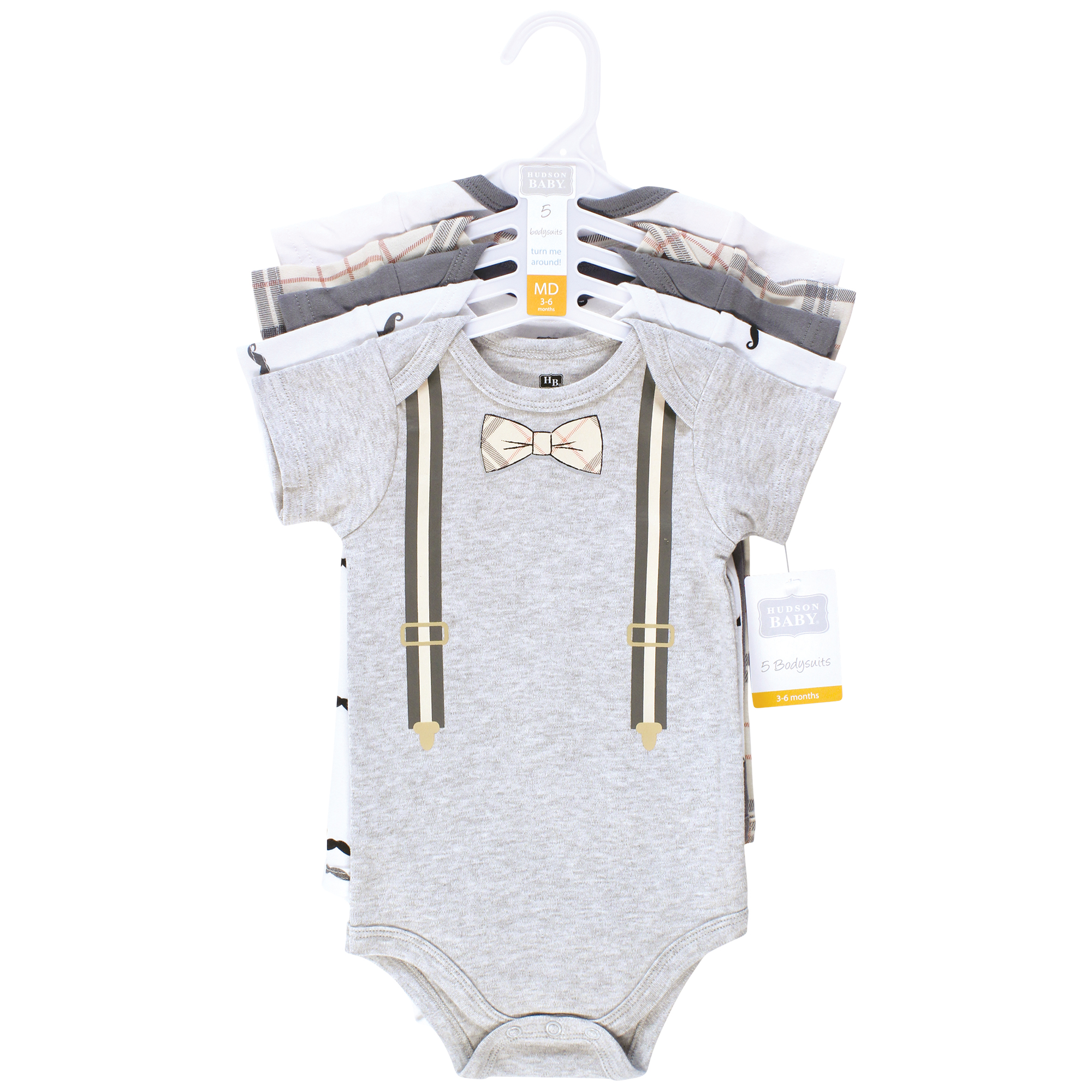 Hudson Baby Cotton Bodysuits 5-Pack, Plaid Bow Tie