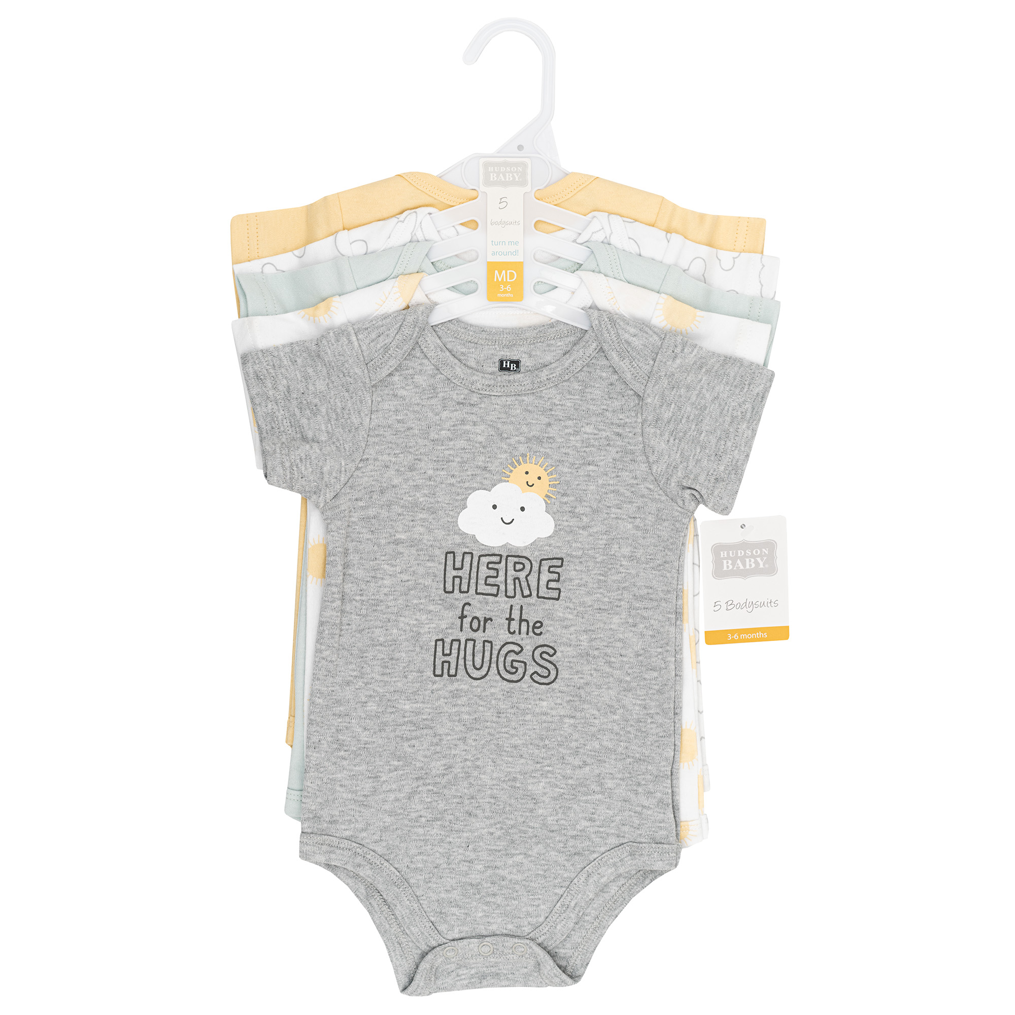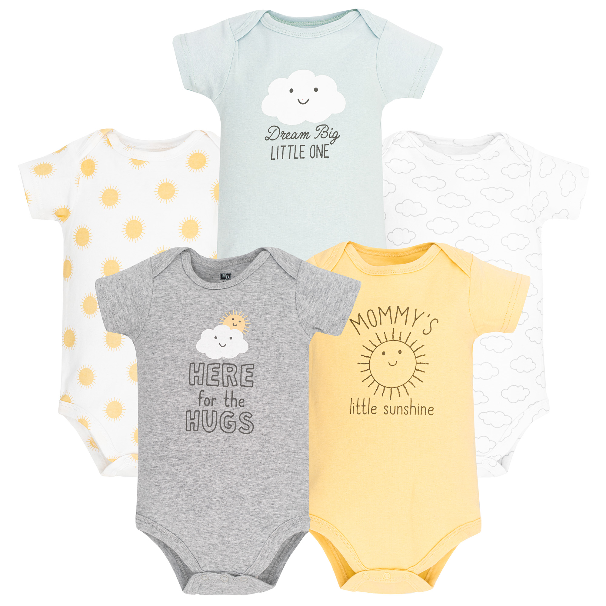 Hudson Baby Cotton Bodysuits 5-Pack, Sunshine And Clouds