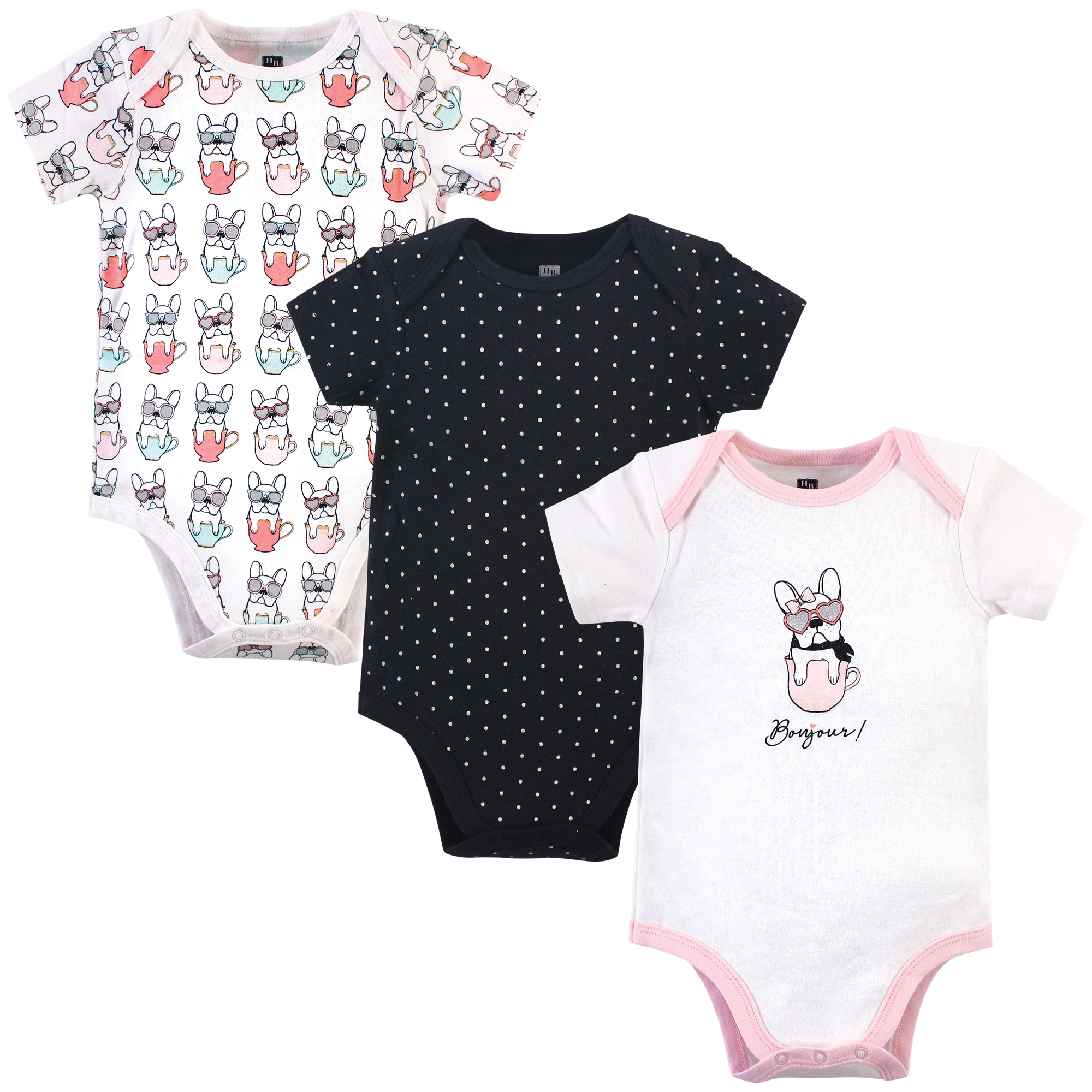 Hudson Baby Cotton Bodysuits, Black Bonjour