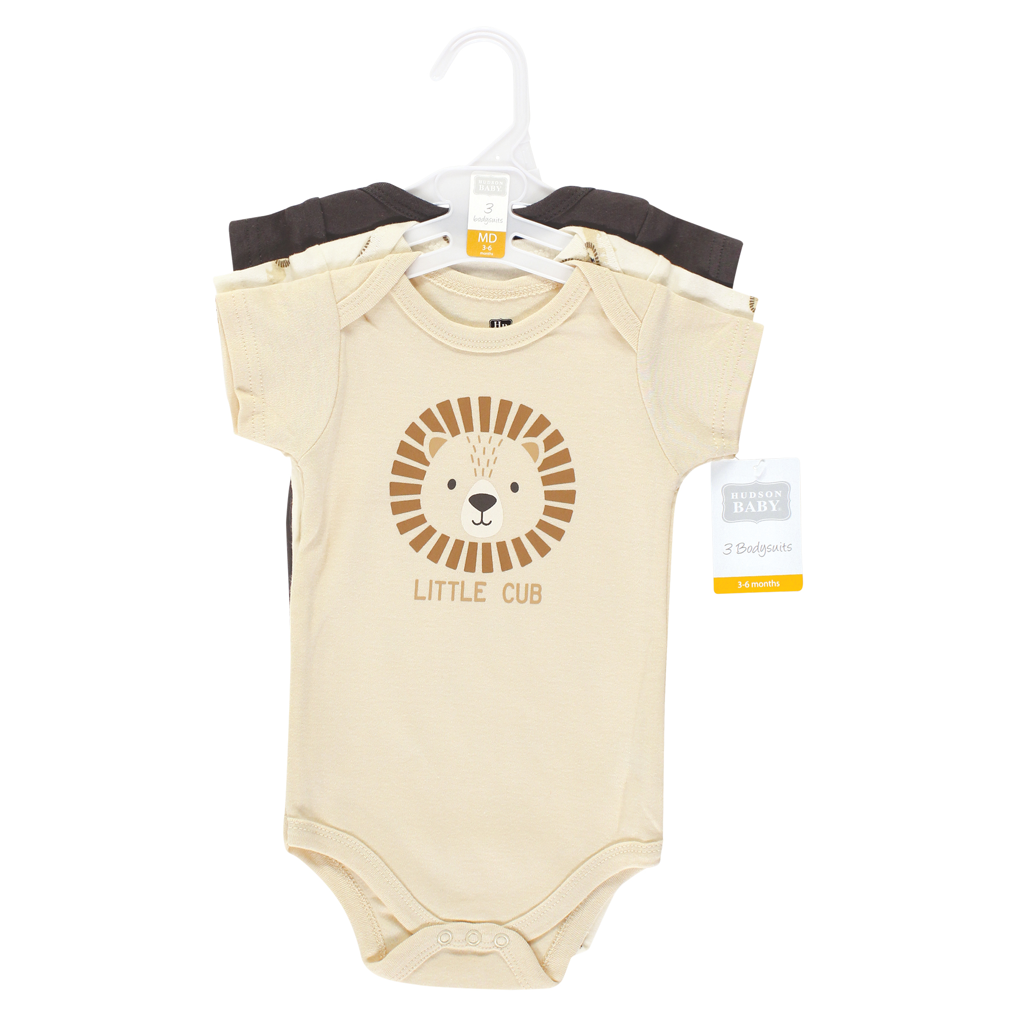 Hudson Baby Cotton Bodysuits, Brave Lion 3 Pack