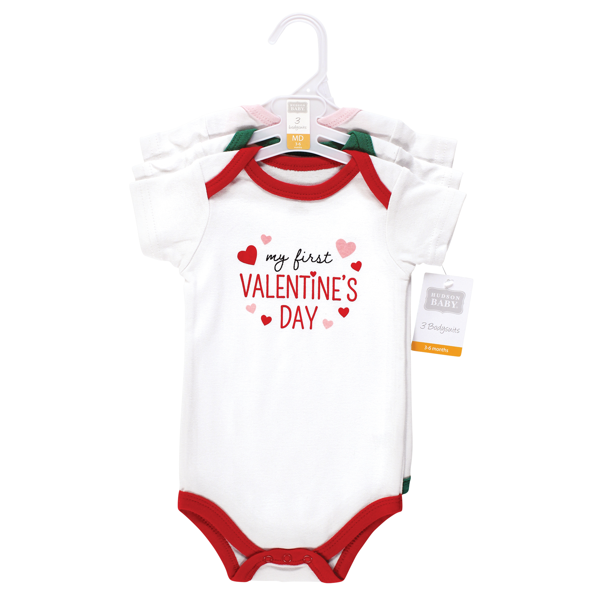 Hudson Baby Cotton Bodysuits, Girl First Valentine Easter