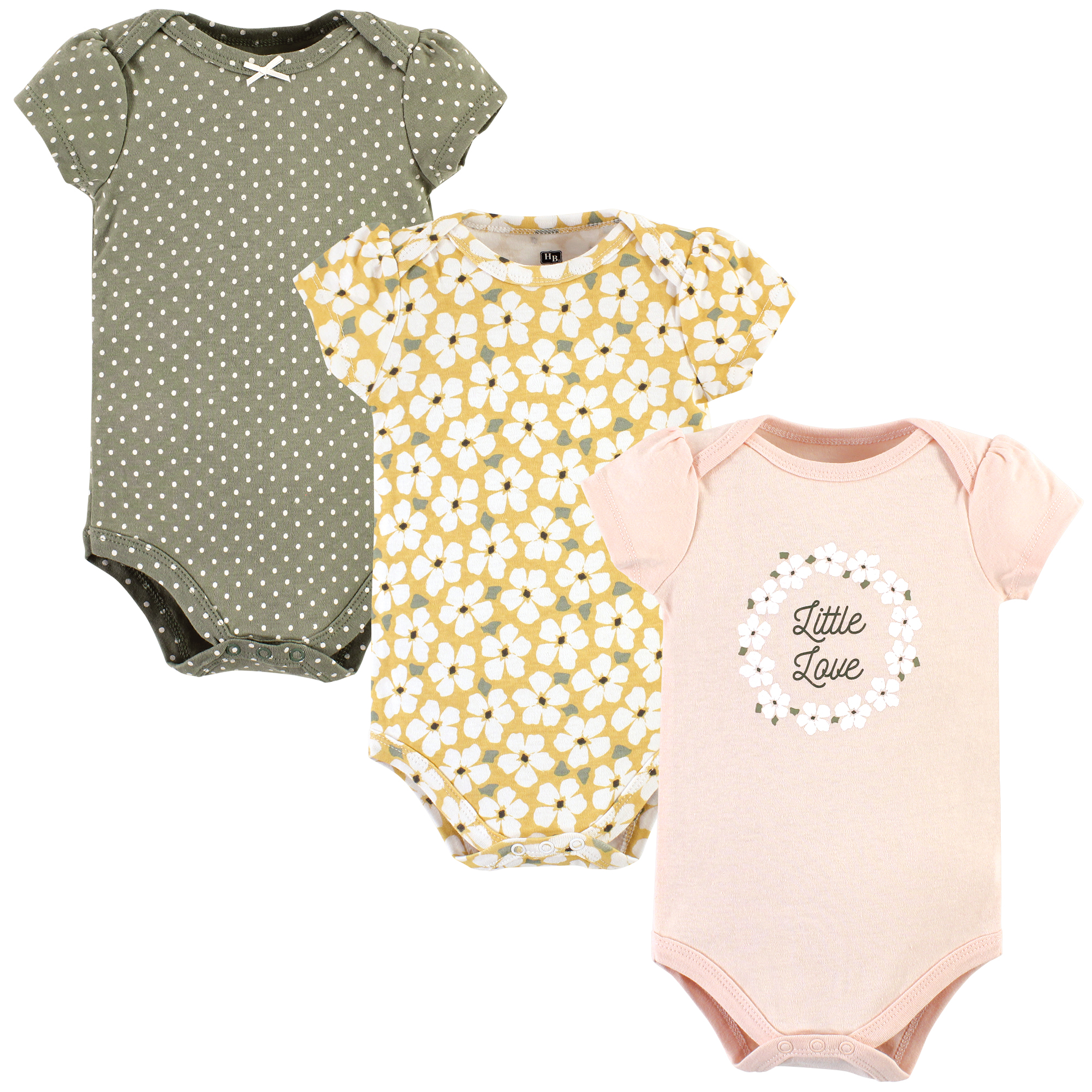 Hudson Baby Cotton Bodysuits, Sage Floral Wreath 3 Pack