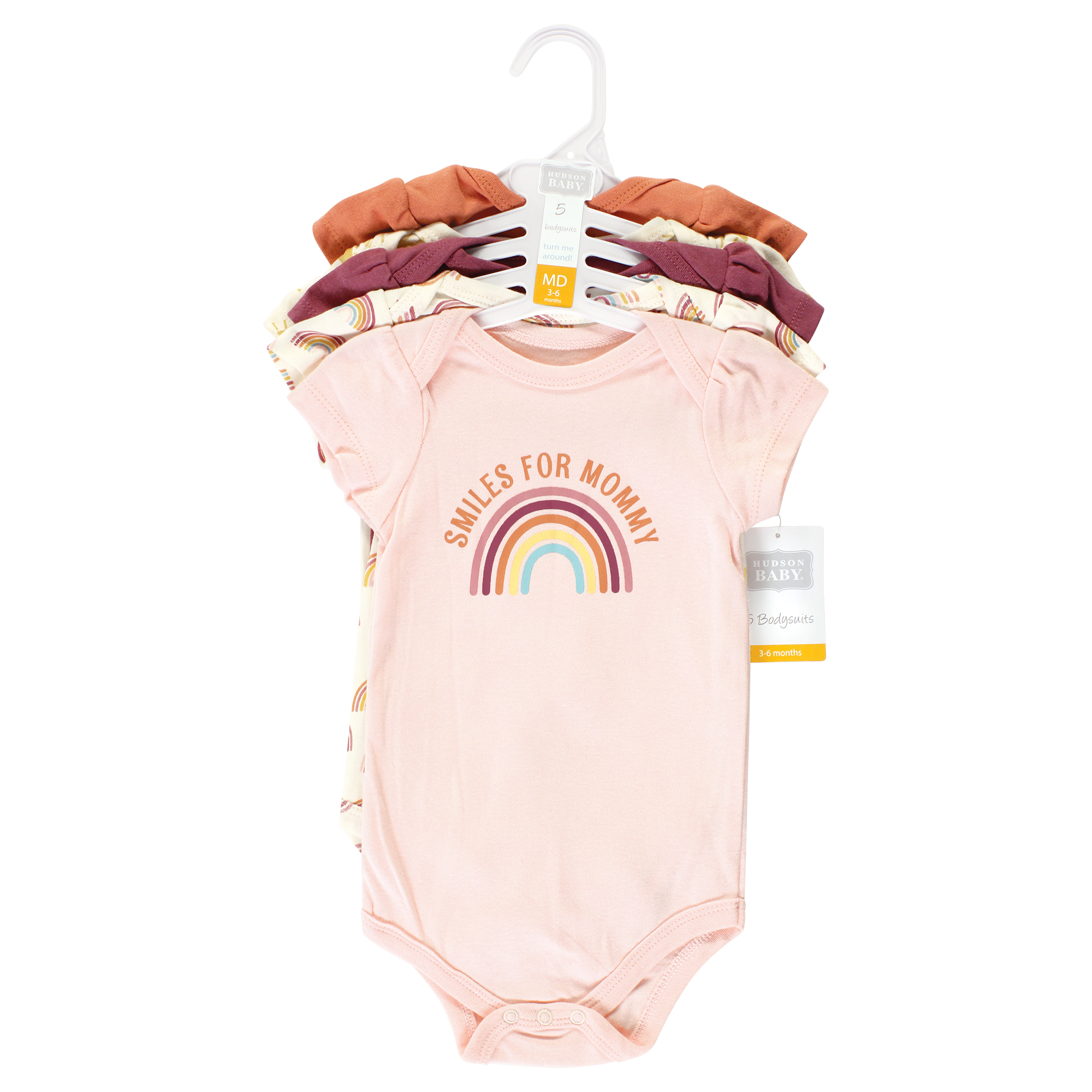 Hudson Baby Cotton Bodysuits, Sunshine Rainbows 5 Pack
