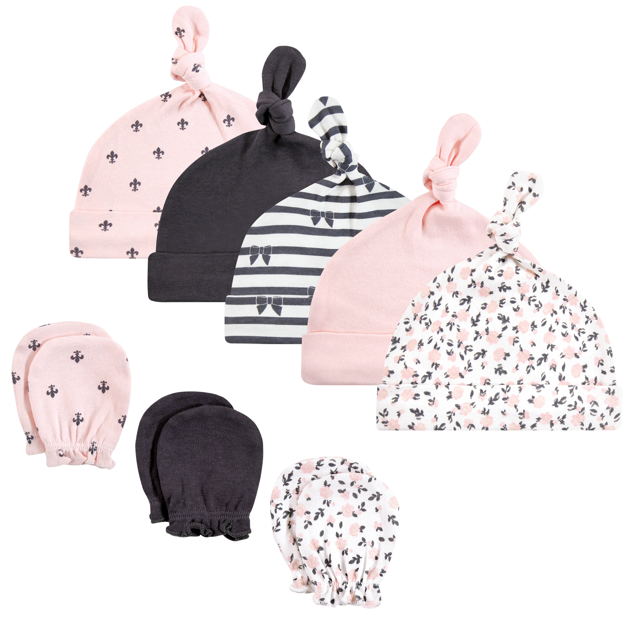 Hudson Baby Cotton Cap and Scratch Mitten Set, Berry Floral
