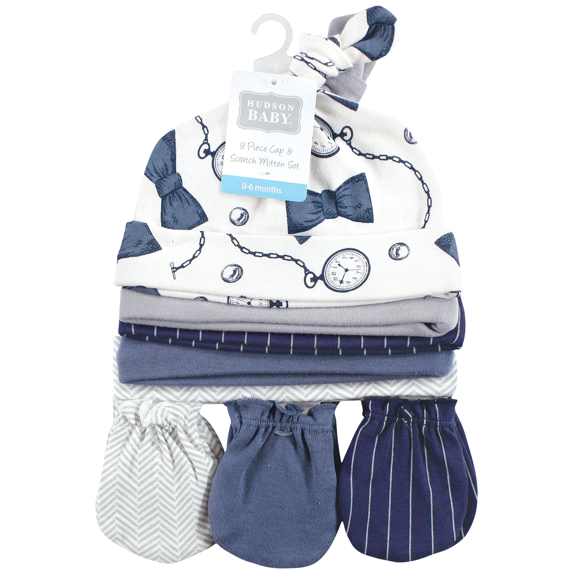 Hudson Baby Cotton Cap and Scratch Mitten Set, Pocket Watch