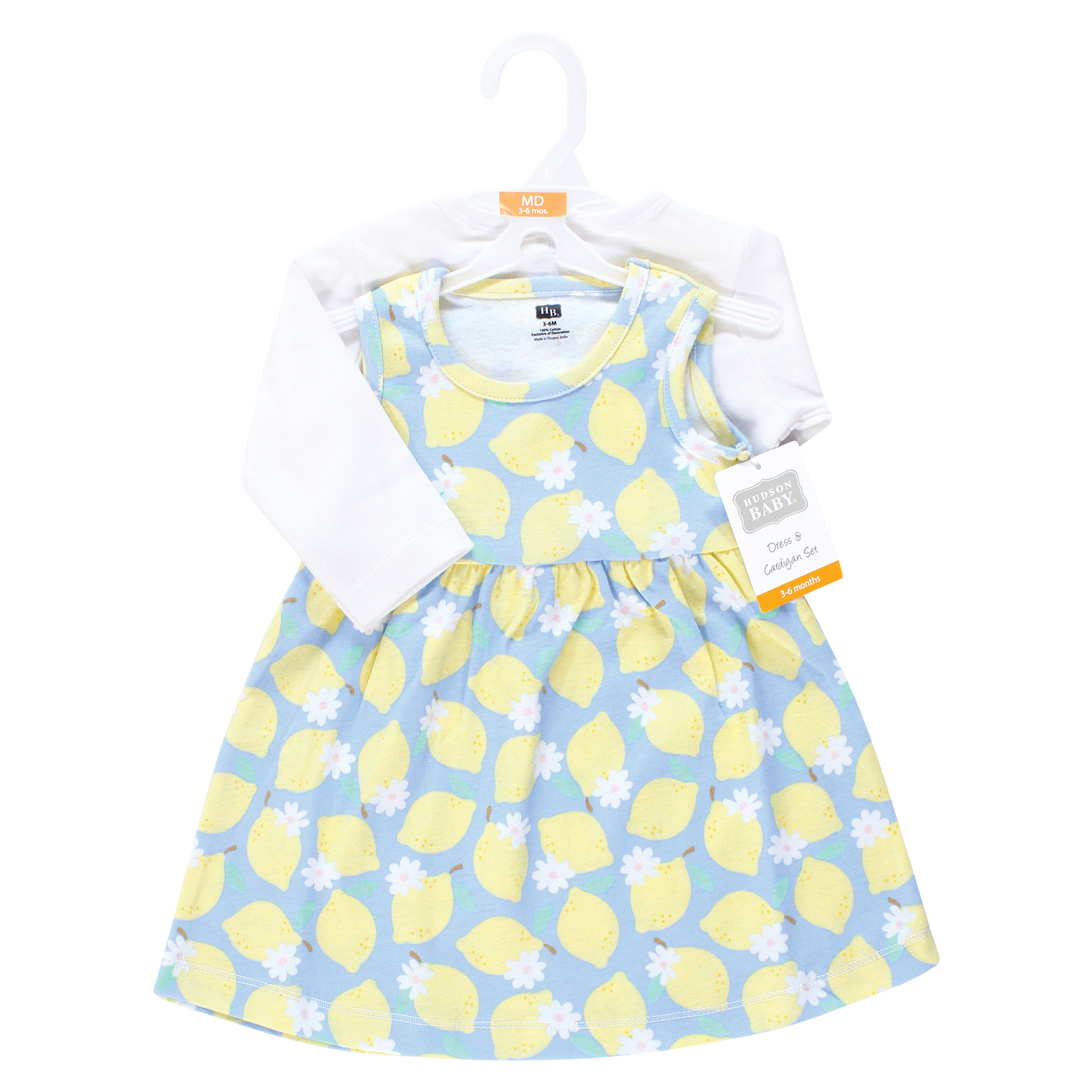Hudson Baby Cotton Dress and Cardigan Set, Blue Lemons
