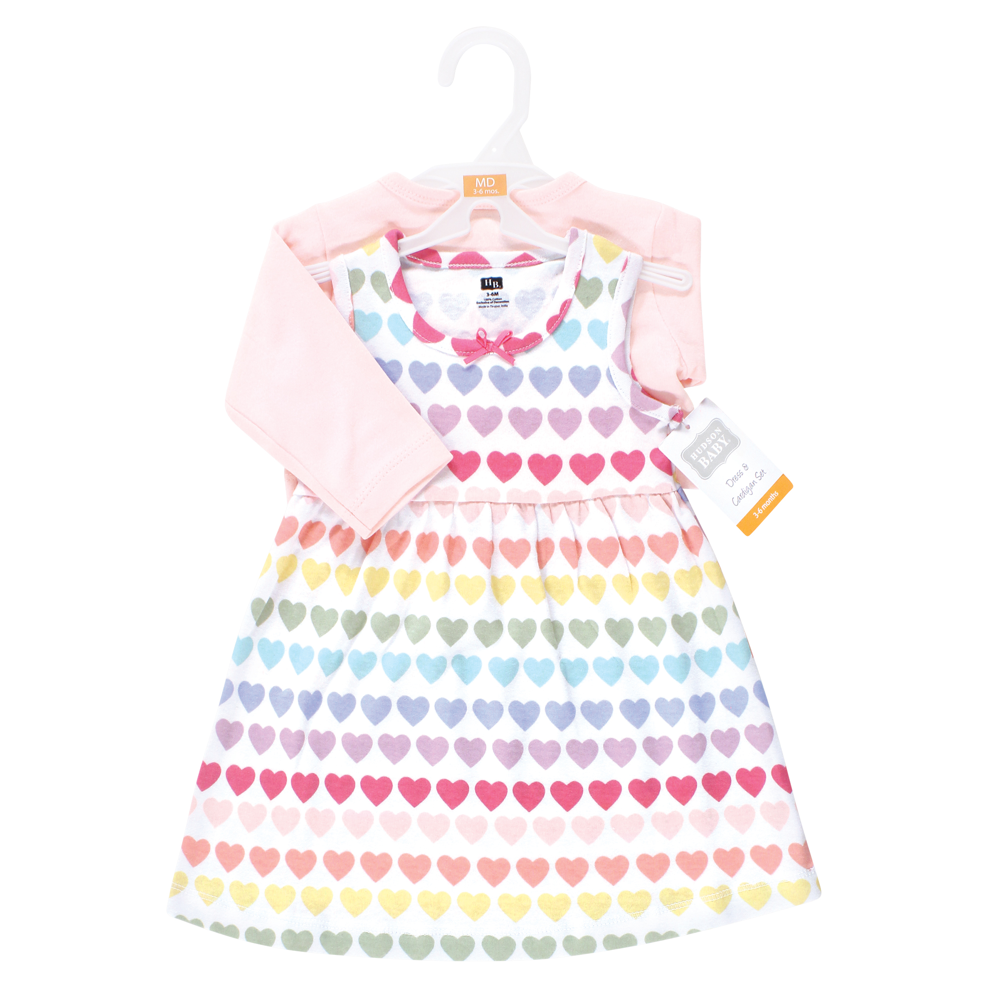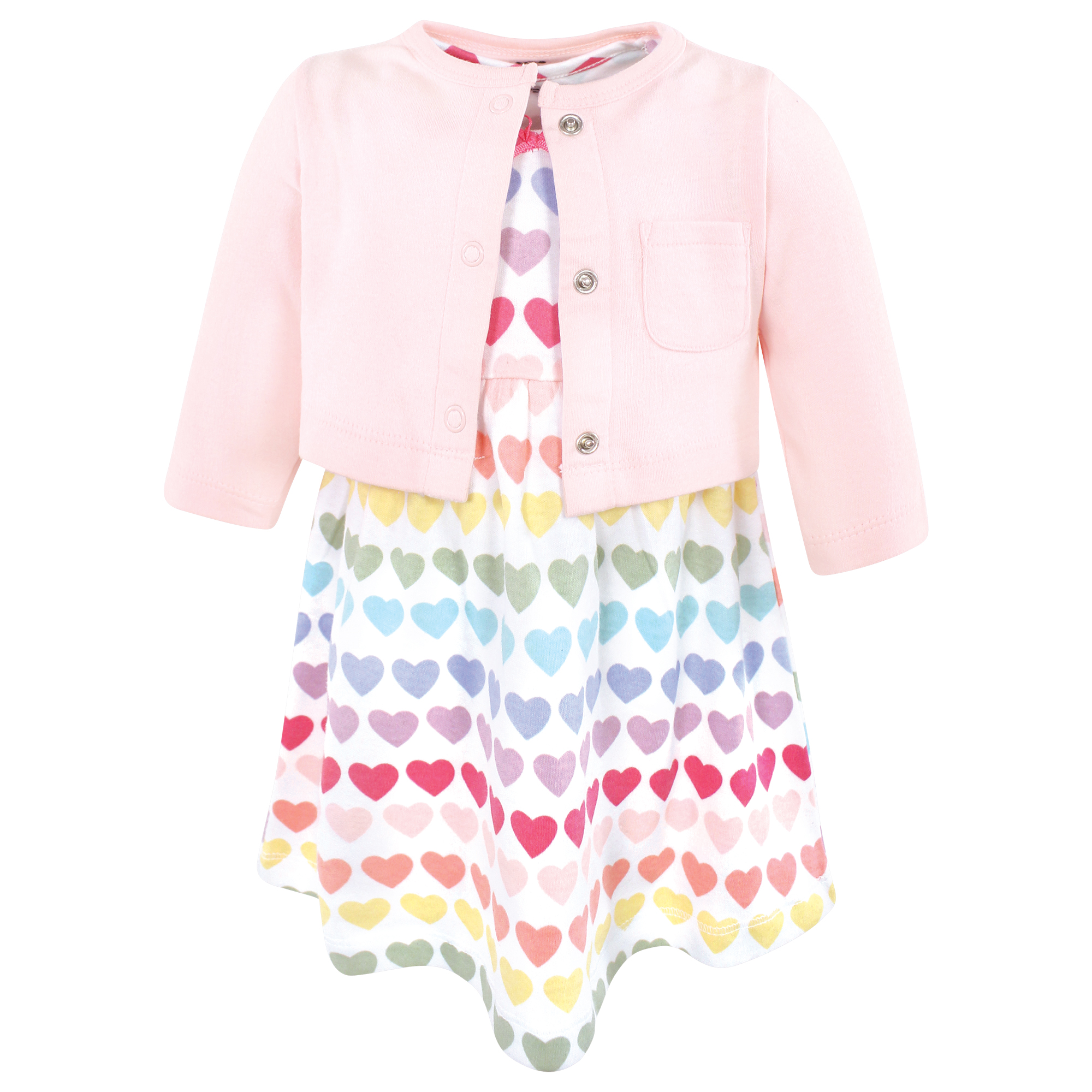 Hudson Baby Cotton Dress and Cardigan Set, Cascading Hearts