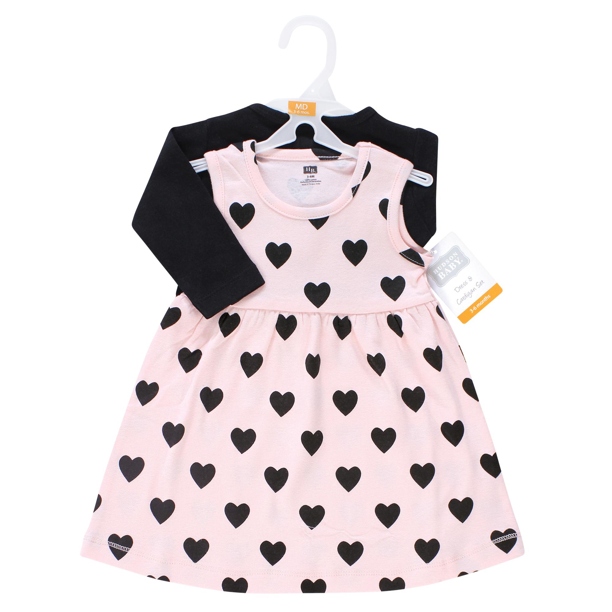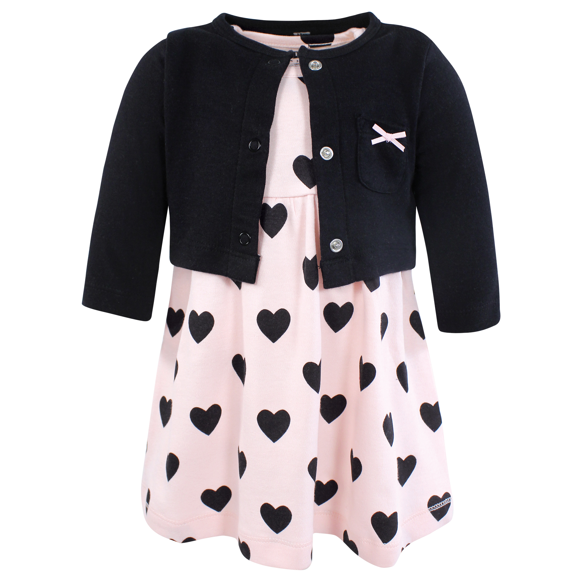 Hudson Baby Cotton Dress and Cardigan Set, Pink Black Heart