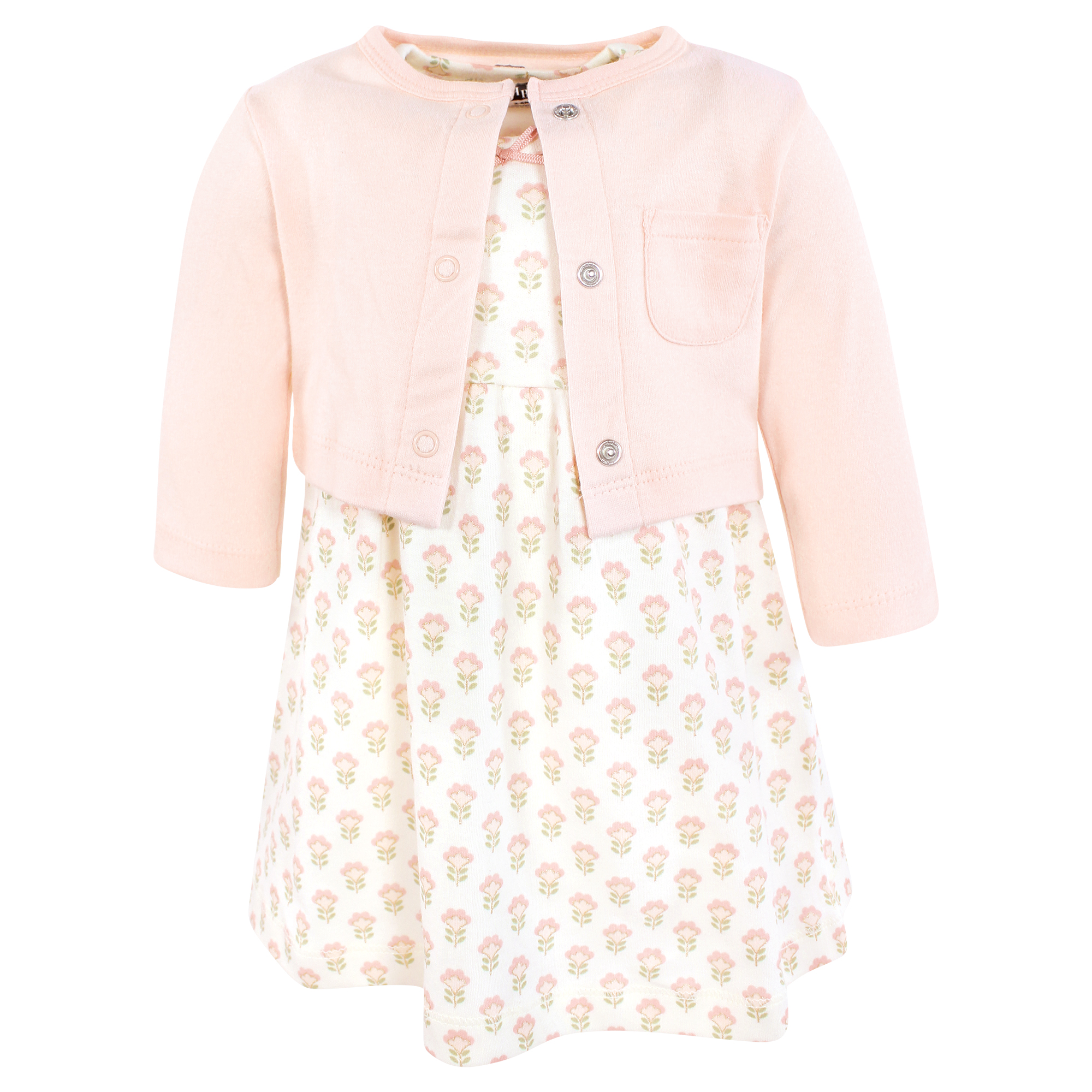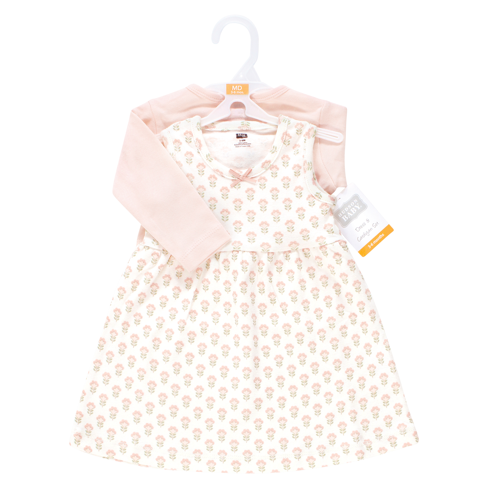 Hudson Baby Cotton Dress and Cardigan Set, Soft Ditsy Floral