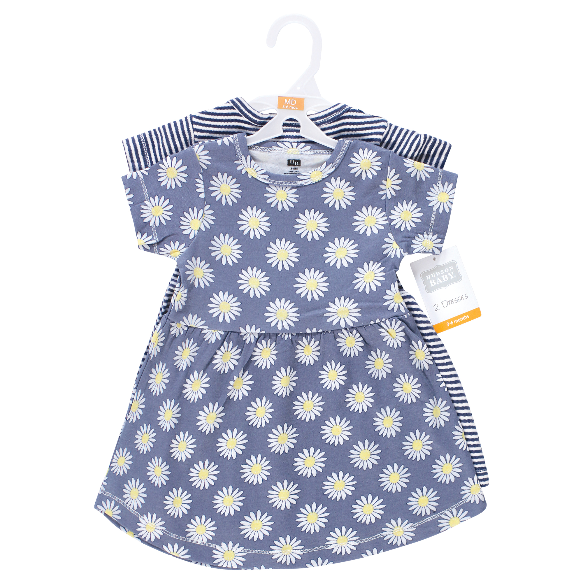 Hudson Baby Cotton Dresses, Blue Daisy 1