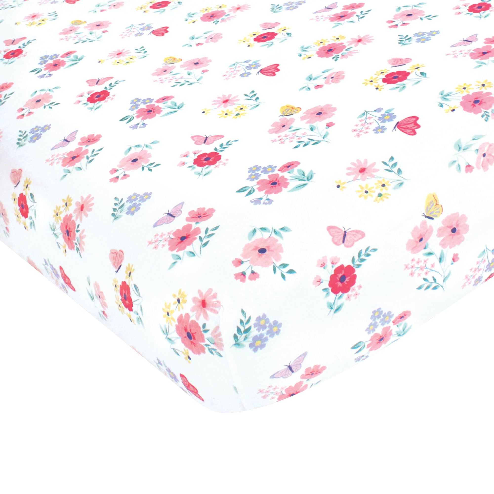 Hudson Baby Cotton Fitted Crib Sheet, Butterfly Floral