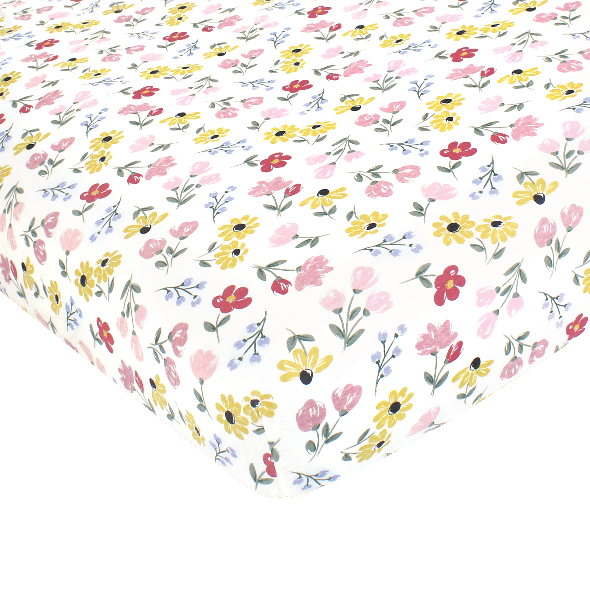 Hudson Baby Cotton Fitted Crib Sheet, Soft Painted Floral