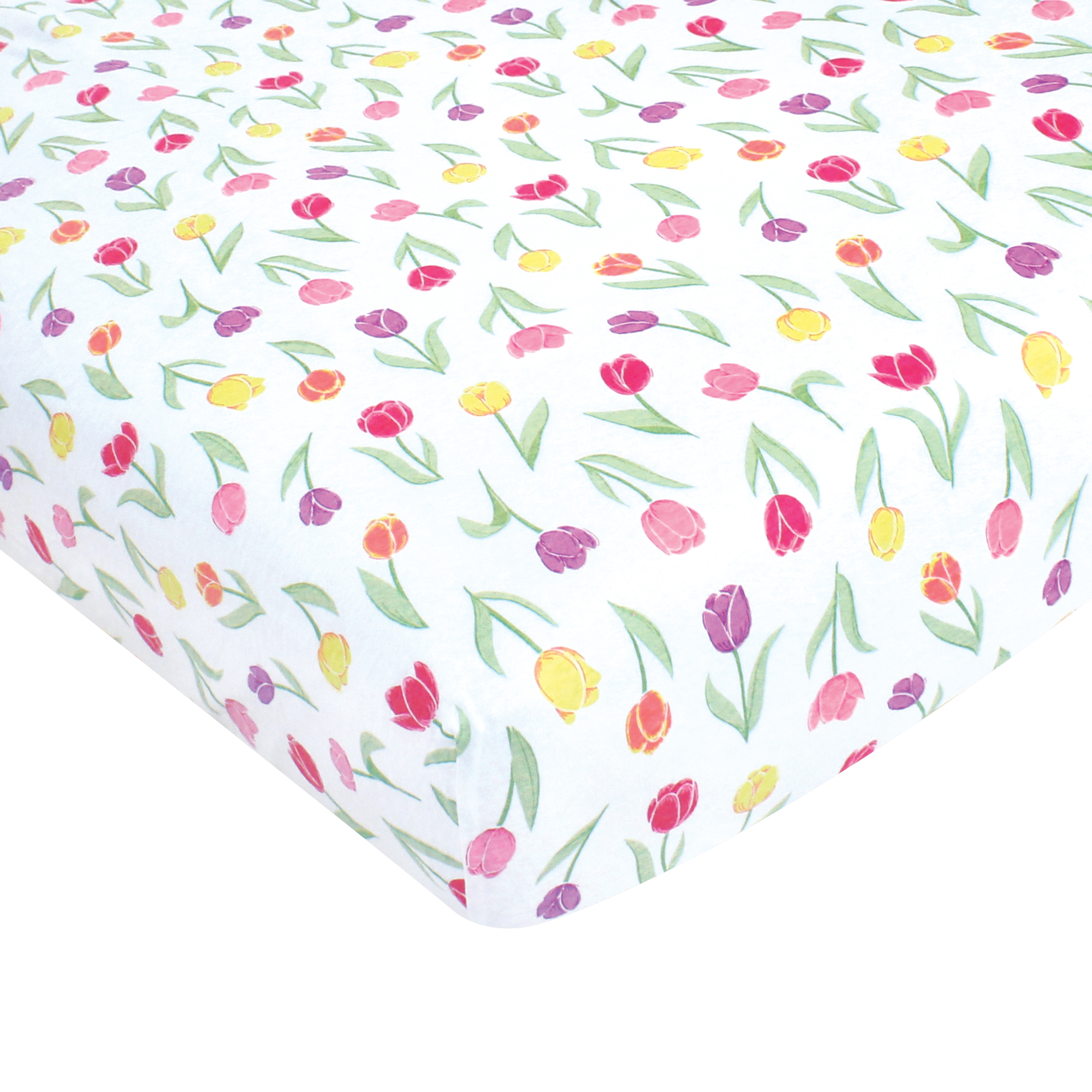 Hudson Baby Cotton Fitted Crib Sheet, Spring Tulips