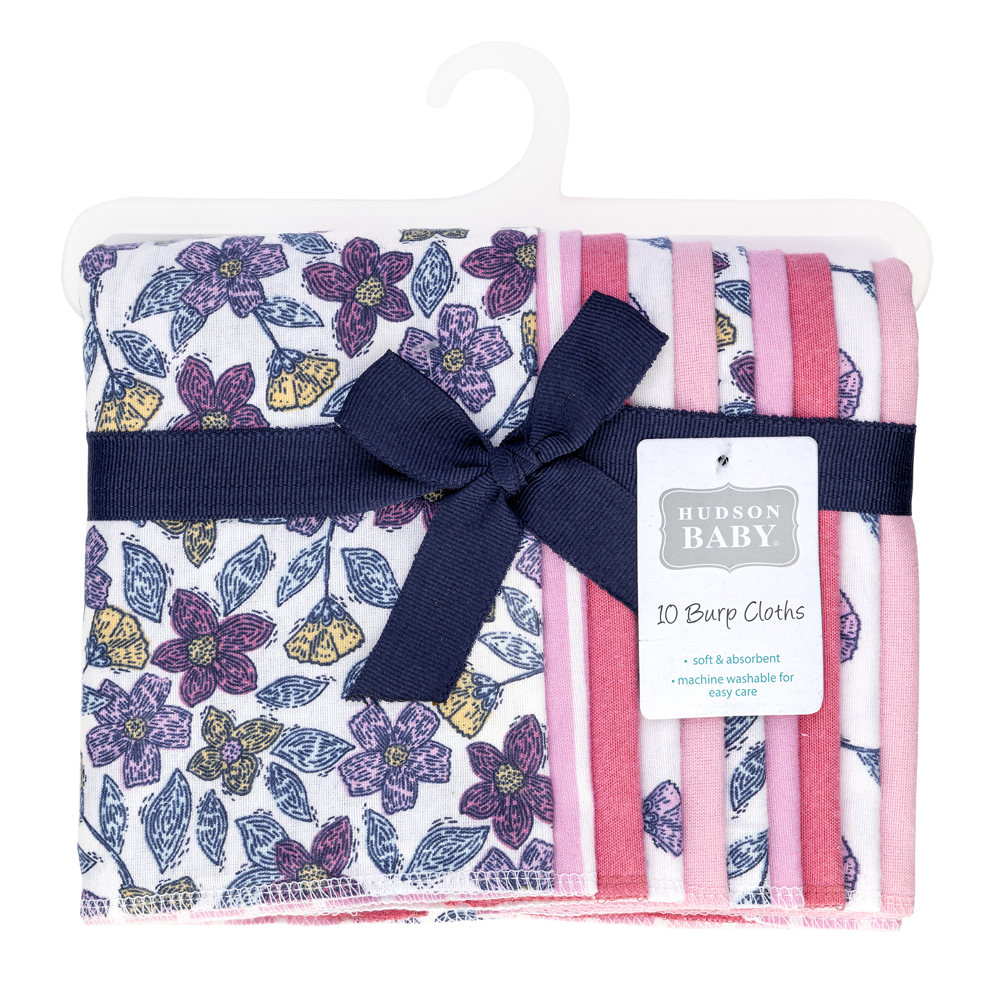 Hudson Baby flannel burp cloths feature multiple layers of fabric to help clean up the messes and spills that you are bound to encounter with your new baby. Our burp cloths are soft and gentle when used on baby's skin and help protect parent's clothes from drool and spills while feeding, burping, and snuggling baby. Our burp cloths will come in handy everyday, whether you are hanging out at home, traveling, or leaving your little one at daycare.