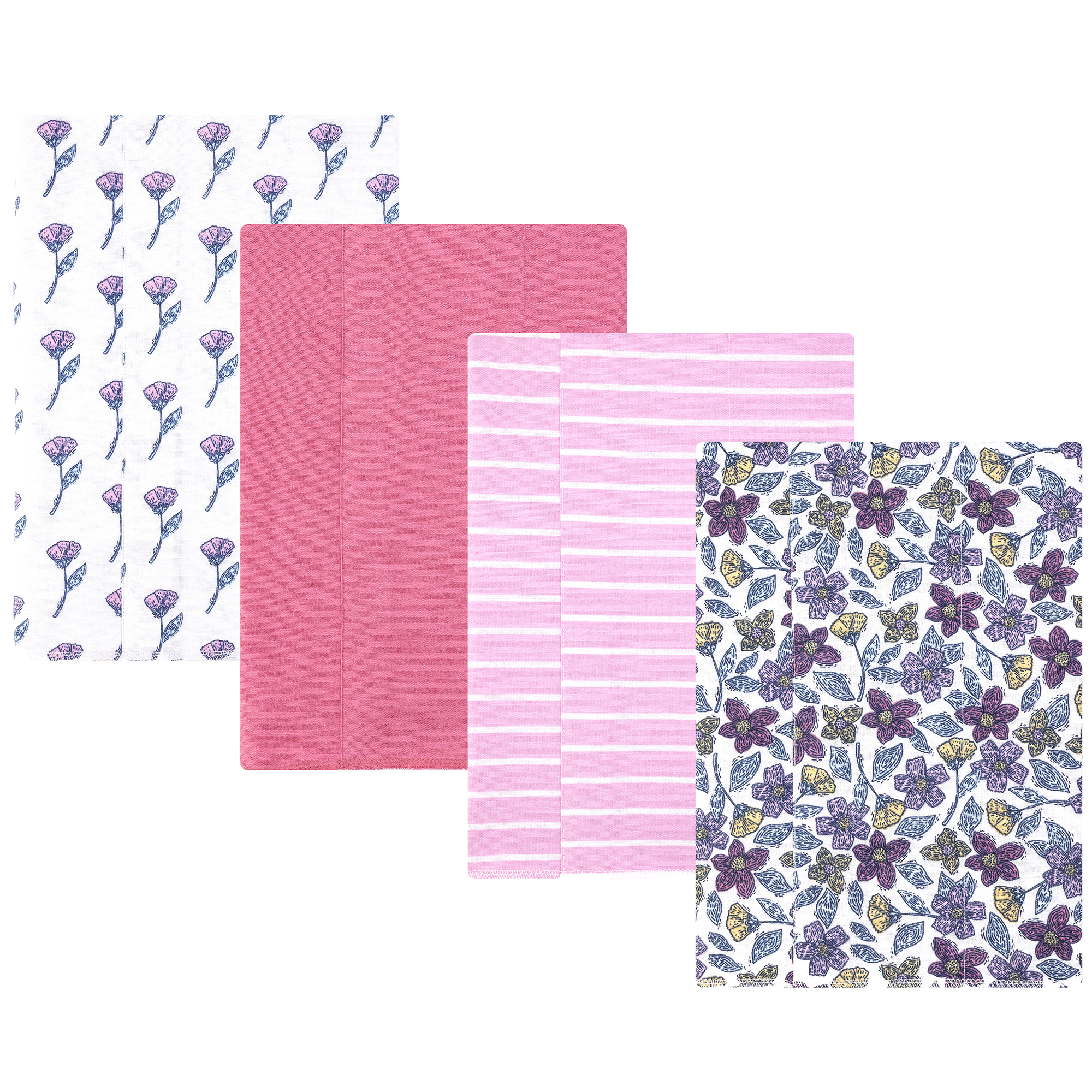 Hudson Baby Cotton Flannel Burp Cloths, Begonia Pink Floral