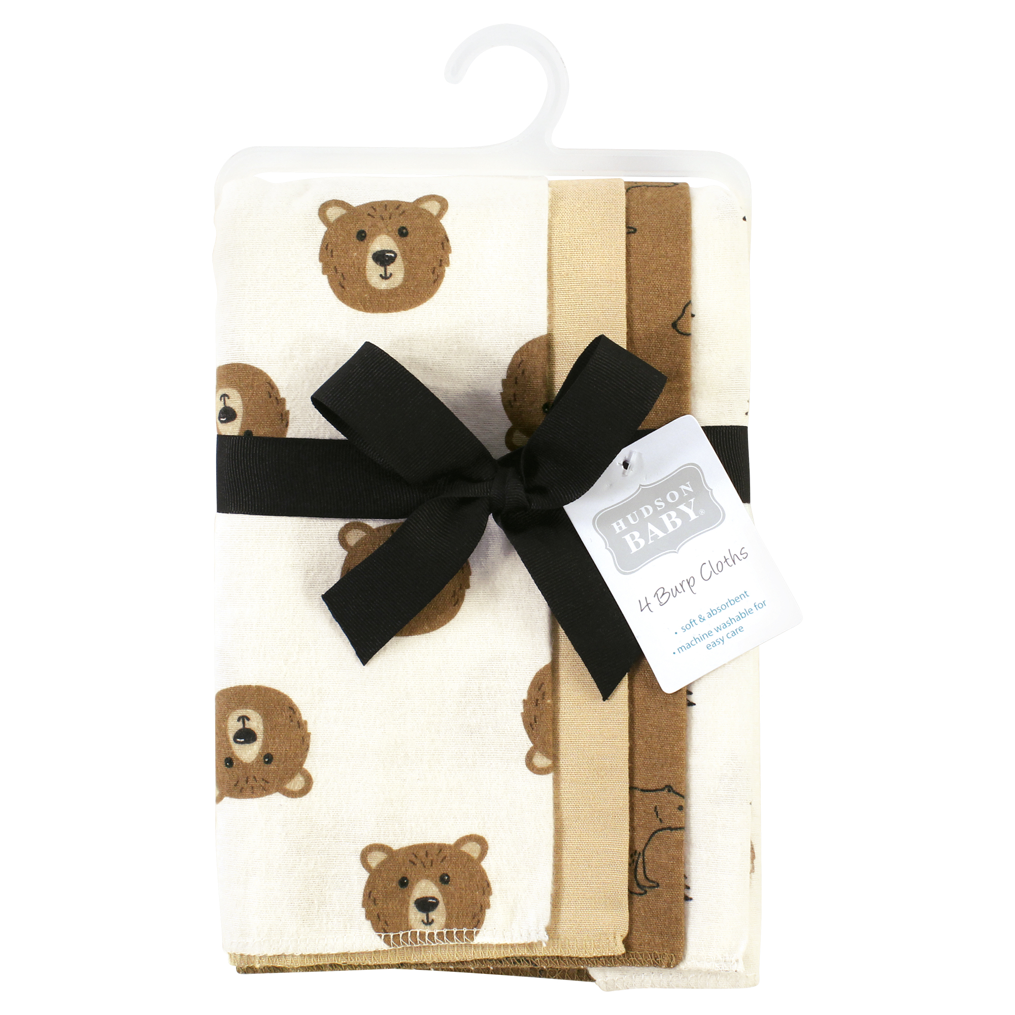Hudson Baby Cotton Flannel Burp Cloths, Brown Bear 4 Pack