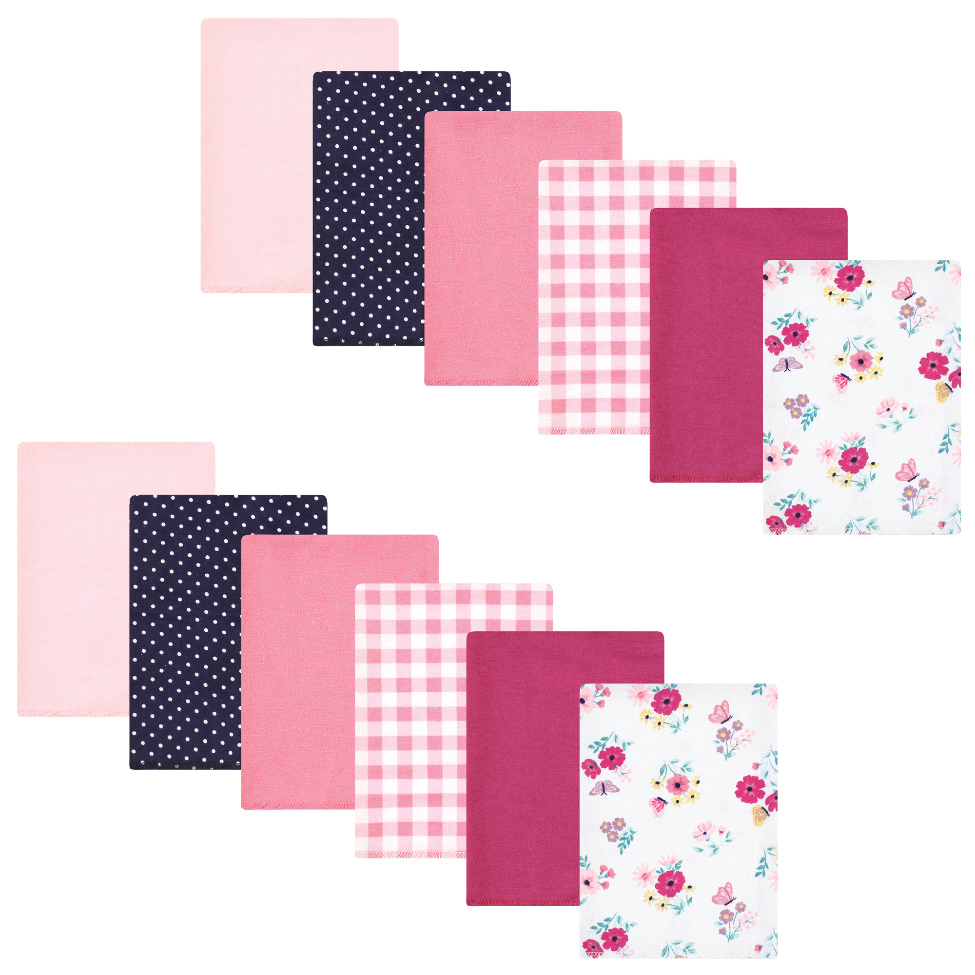 Hudson Baby Cotton Flannel Burp Cloths Bundle, Butterfly Floral