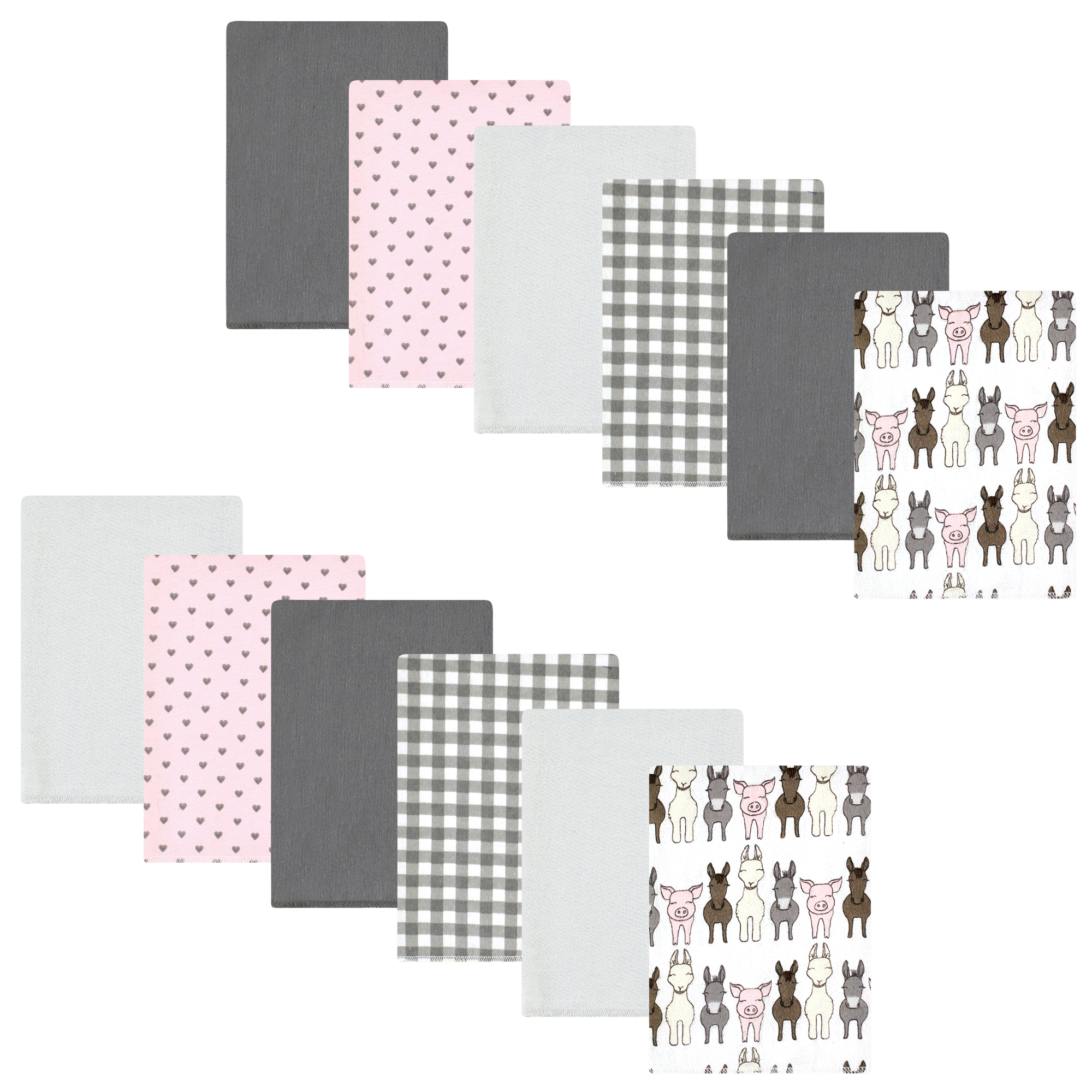 Hudson Baby Cotton Flannel Burp Cloths Bundle, Farm Friends Pink