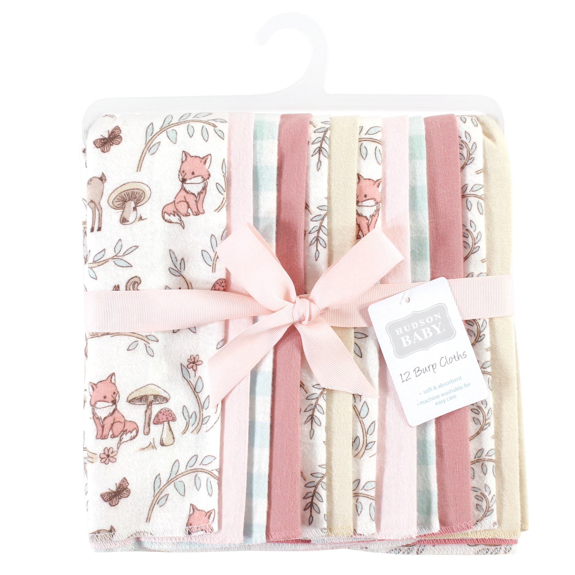 Hudson Baby Cotton Flannel Burp Cloths Bundle, Girl Woodland Pals