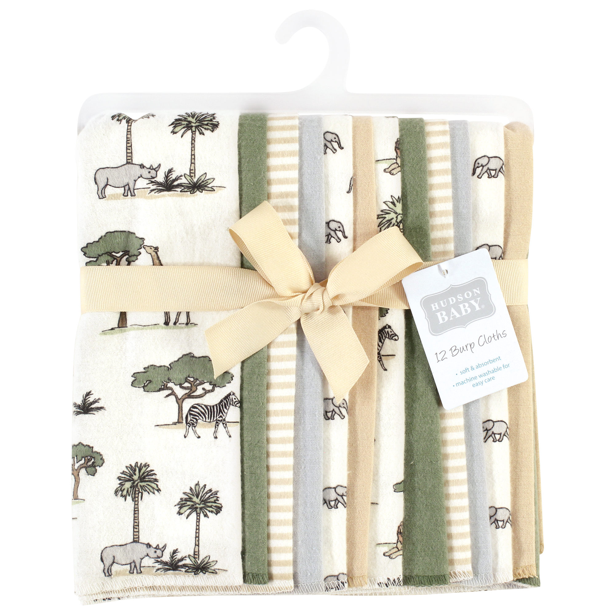 Hudson Baby Cotton Flannel Burp Cloths Bundle, Going On Safari
