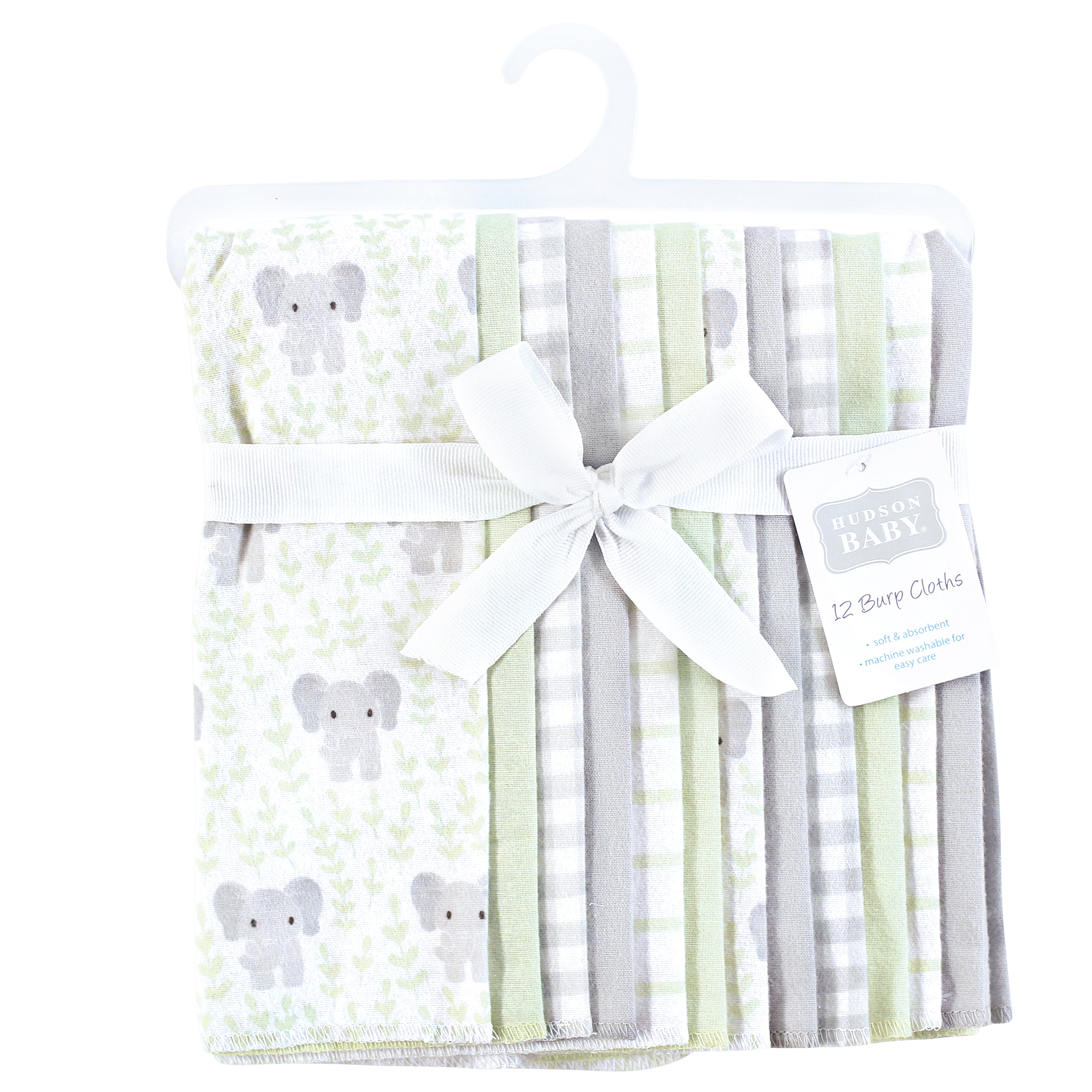 Hudson Baby Cotton Flannel Burp Cloths Bundle, Leafy Elephant