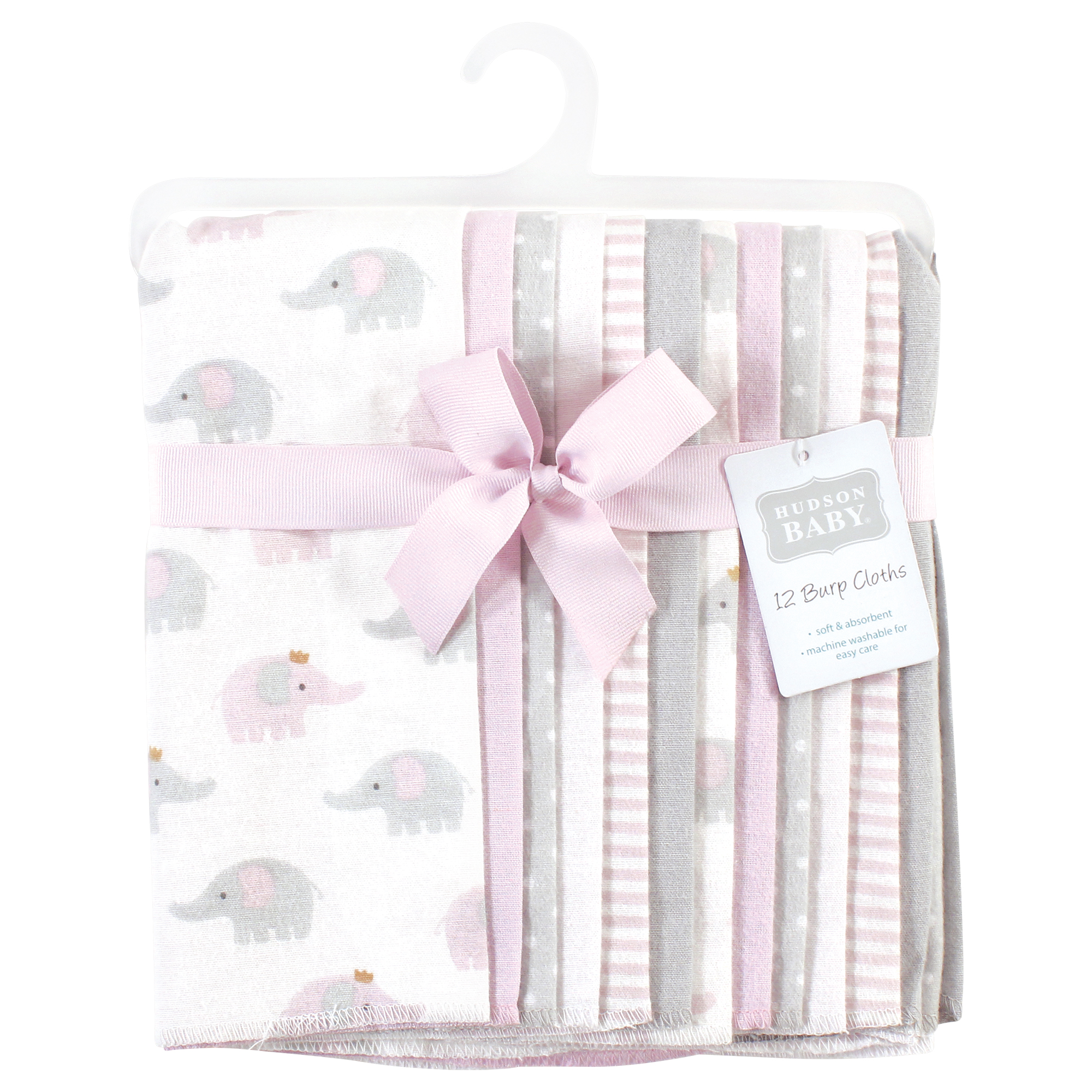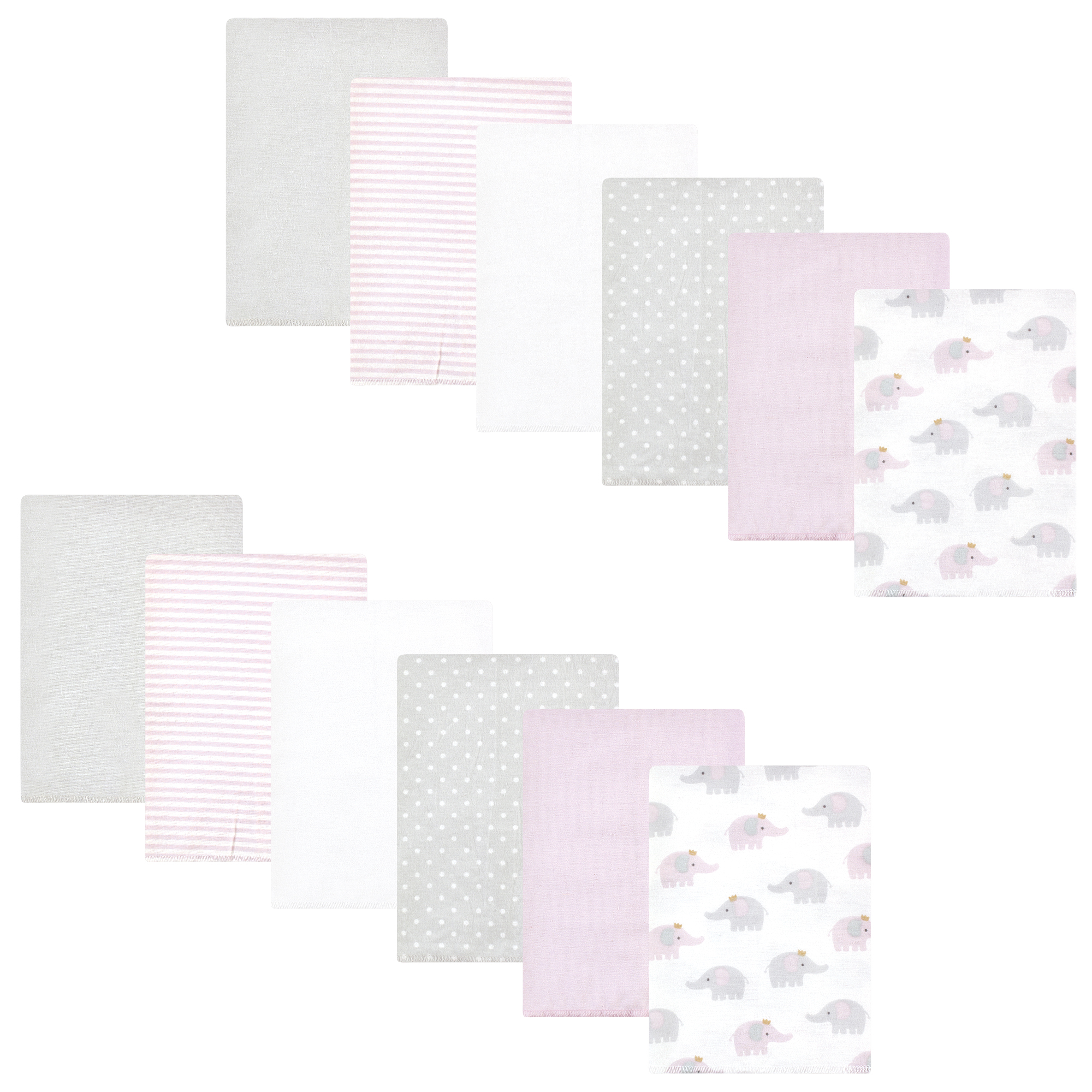 Hudson Baby Cotton Flannel Burp Cloths Bundle, Lilac Elephants