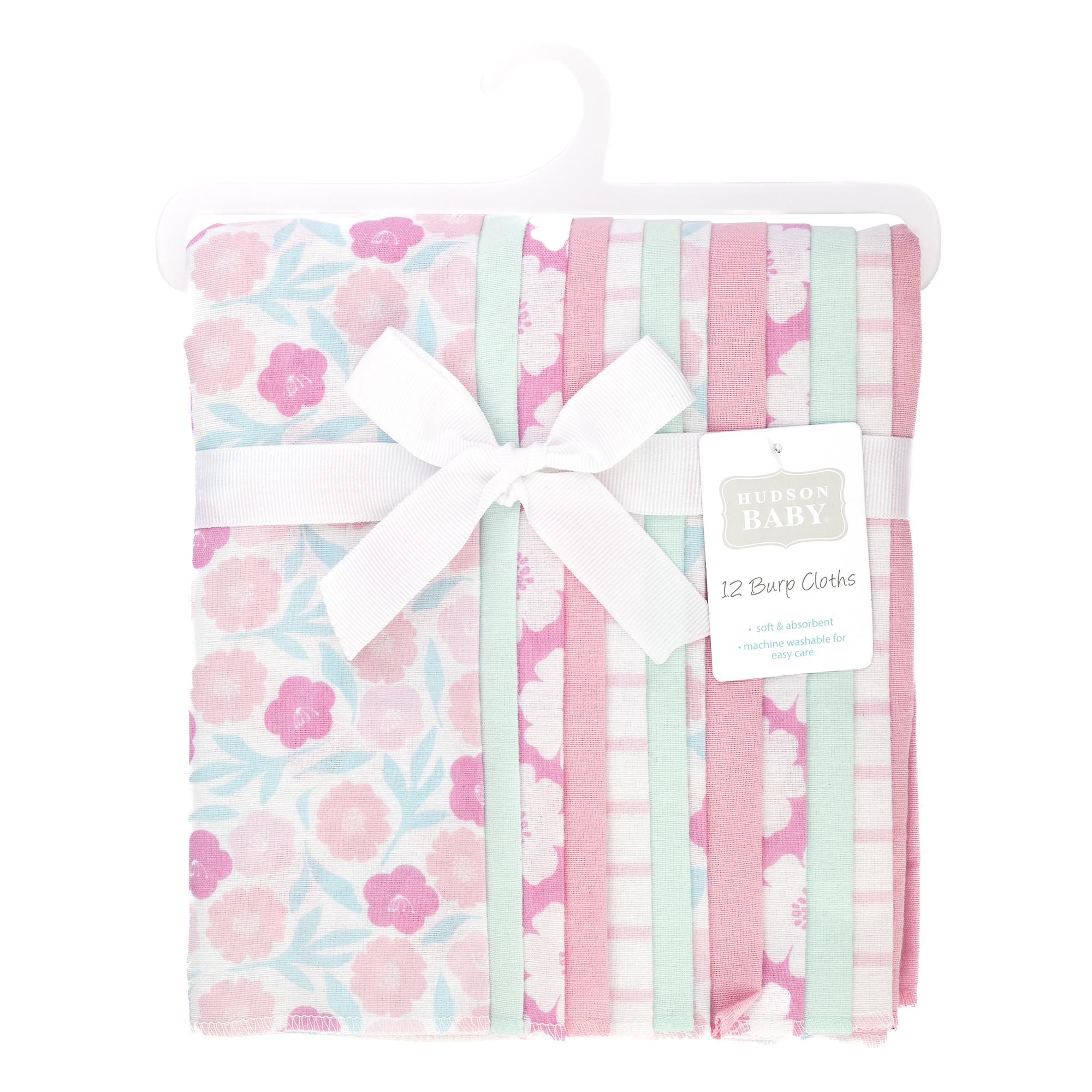 Hudson Baby Cotton Flannel Burp Cloths Bundle, Pink Daisies