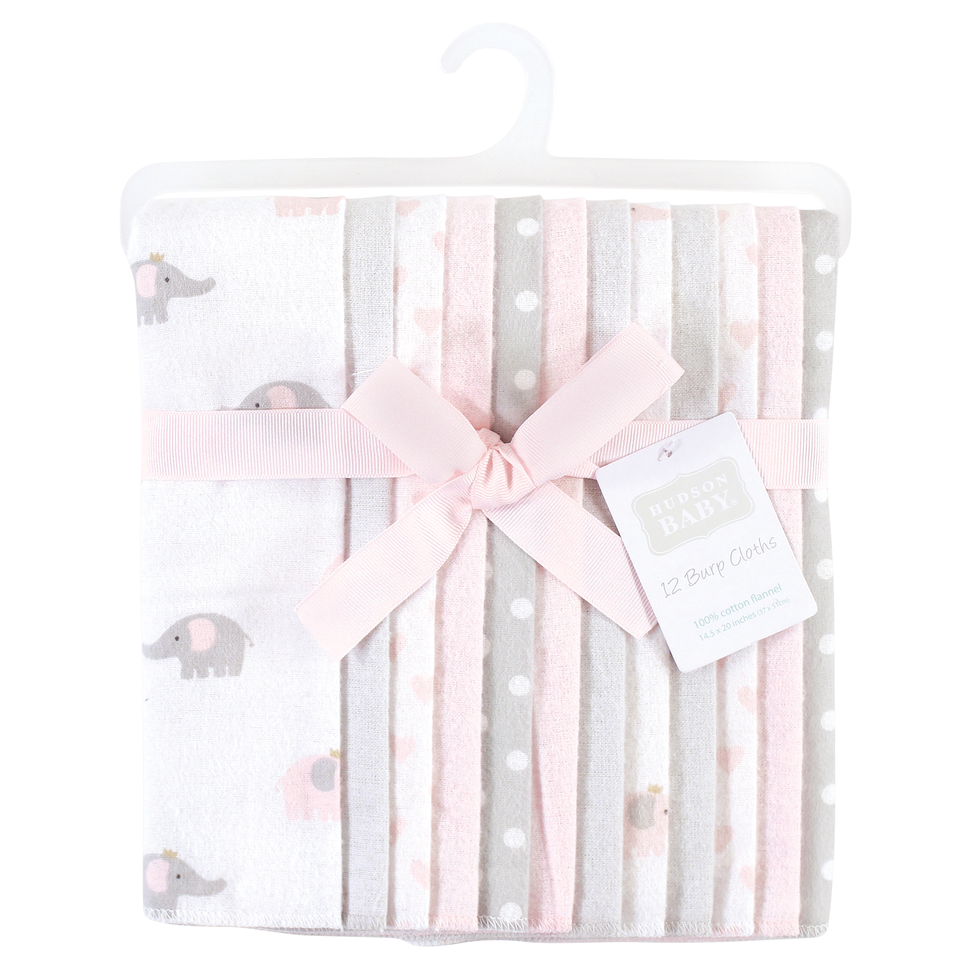 Hudson Baby Cotton Flannel Burp Cloths Bundle, Pink Gray Elephant